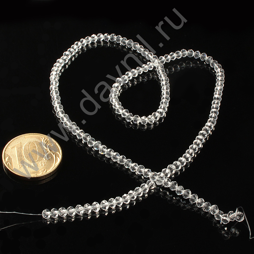 Бусины хрусталь 2 мм 38 см на нитке белые
