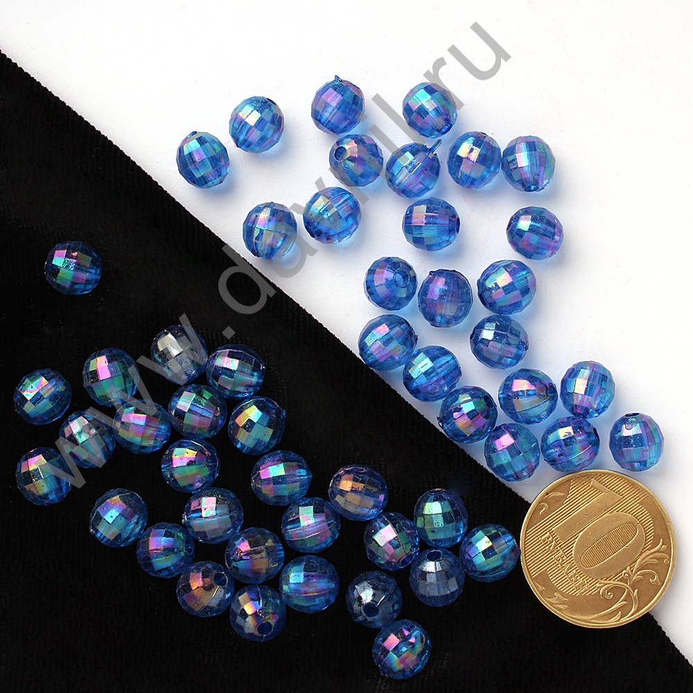 Бусины акрил гранёные круглые хамелион d=6 мм 50 гр бензиново синие
