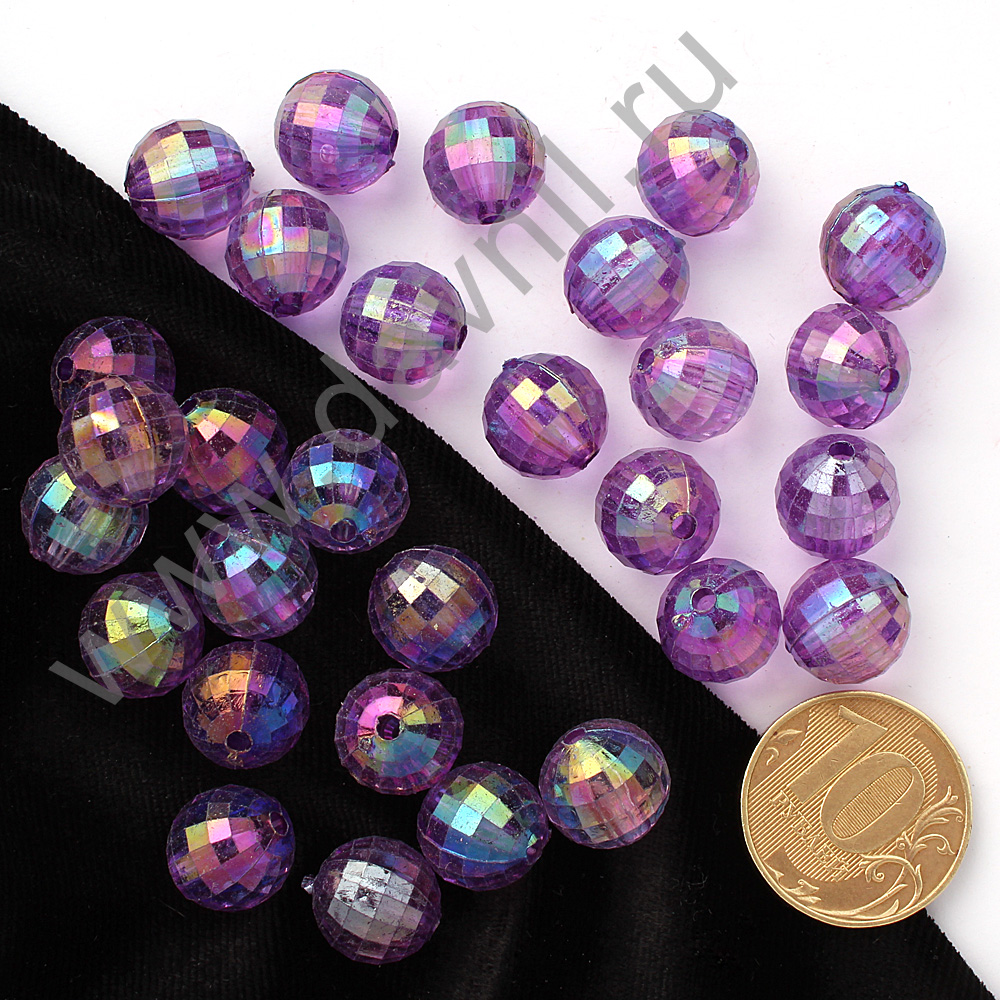 Бусины акрил гранёные круглые хамелеон d=10 мм 400 г фиолетовые