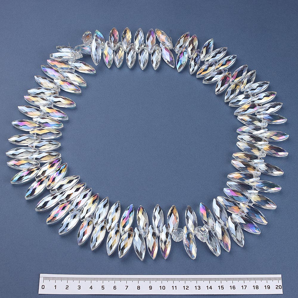 Хрусталь листик на нитке 10*30 мм 100 шт белый АВ