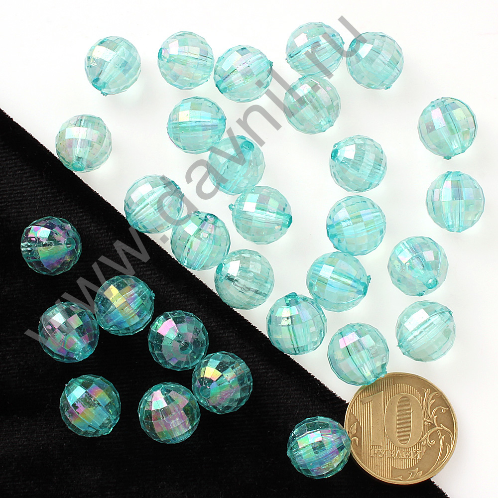Бусины акрил гранёные круглые хамелеон d=10 мм 400 г бирюзовые