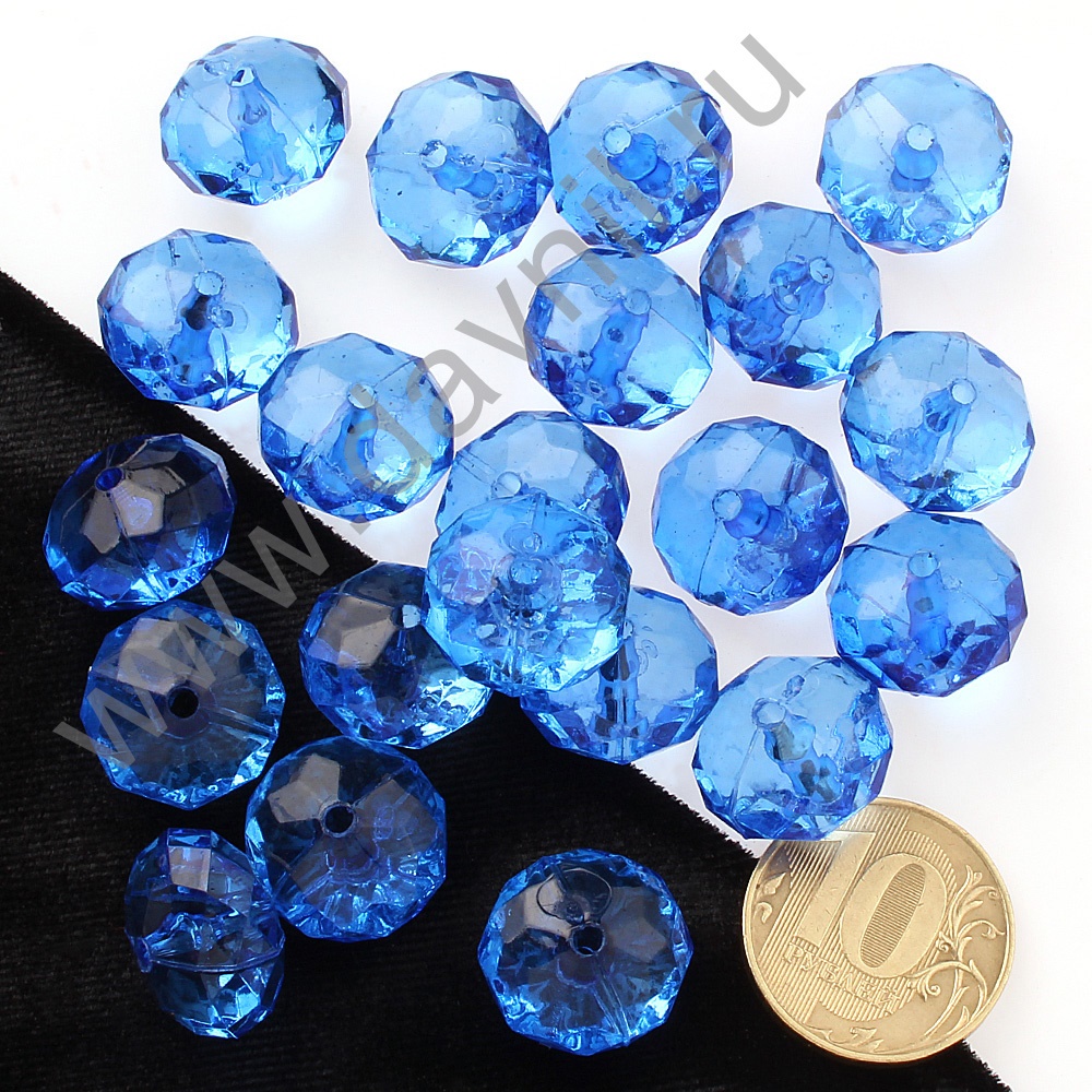 Бусины акрил гранёные рондель d=16 мм 50 гр синие