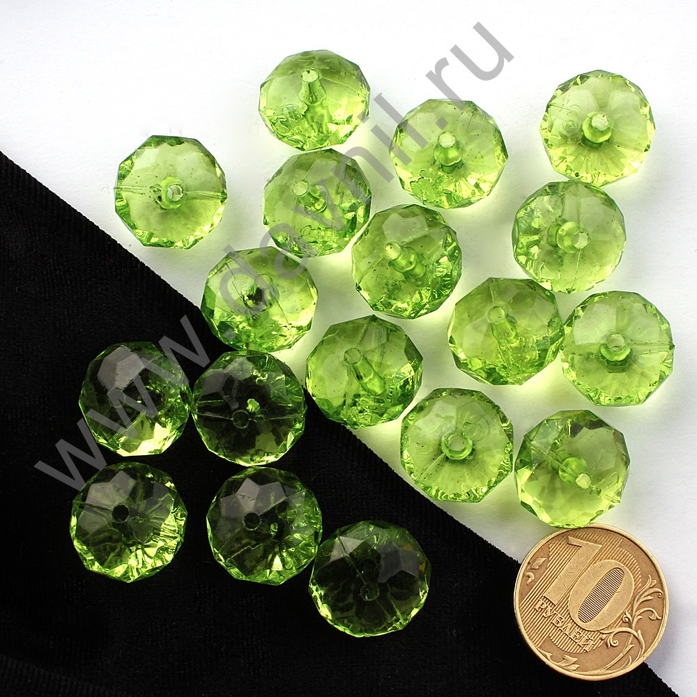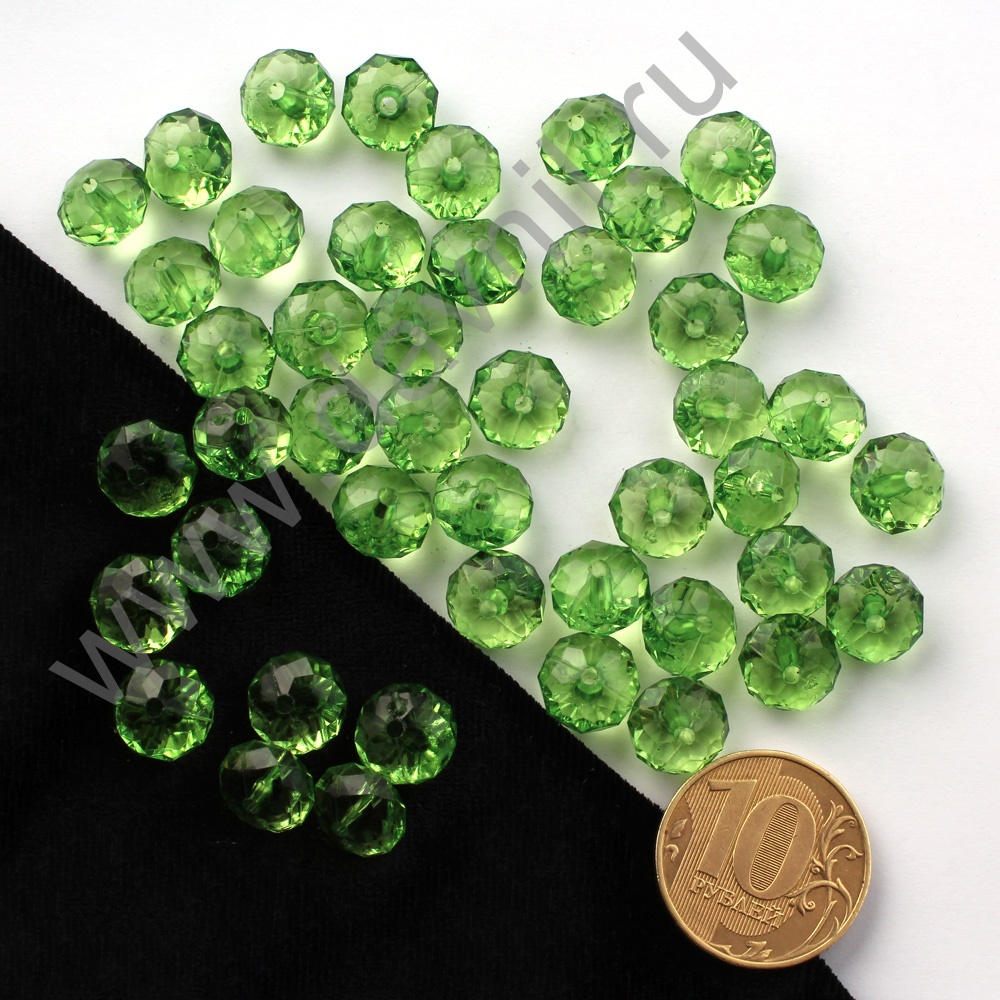 Бусины акрил гранёные рондели d=10 мм 50 гр светло зелёные