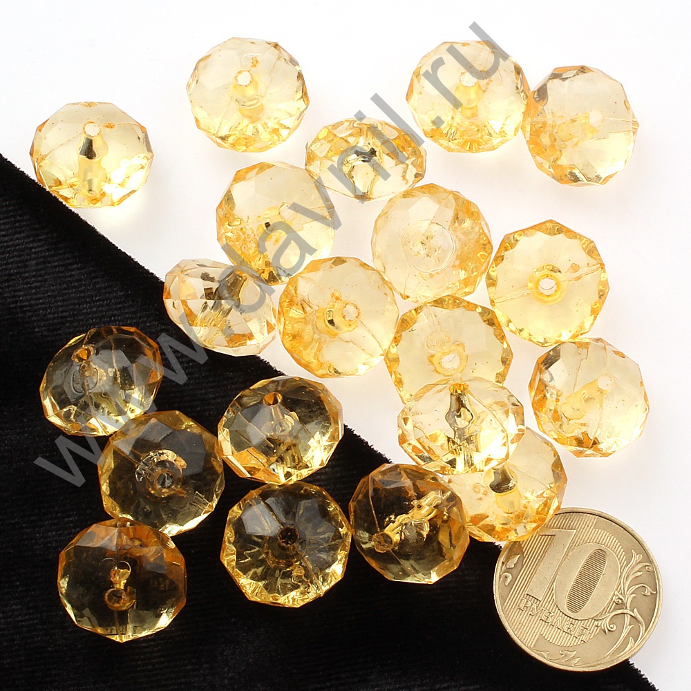 Бусины акрил гранёные рондели d=10 мм 50 гр жёлтые