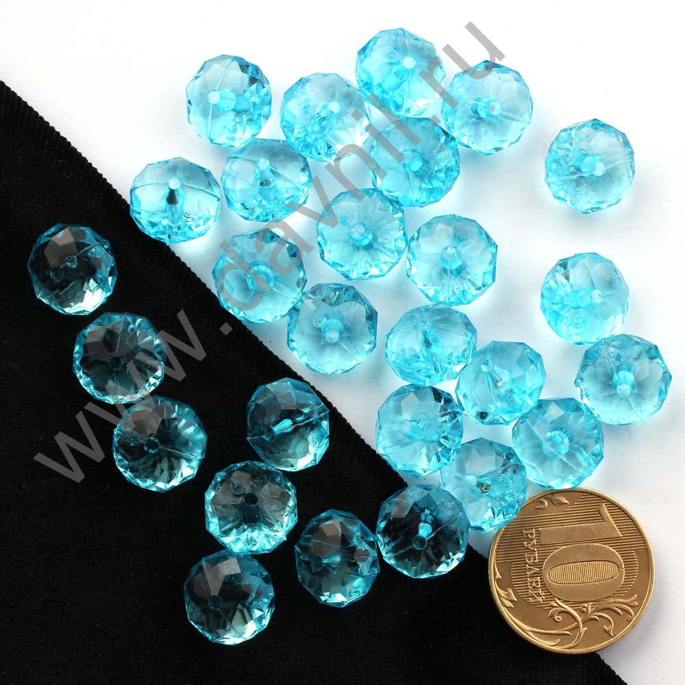 Бусины акрил гранёные рондели d=12 мм 50 гр бирюзовые