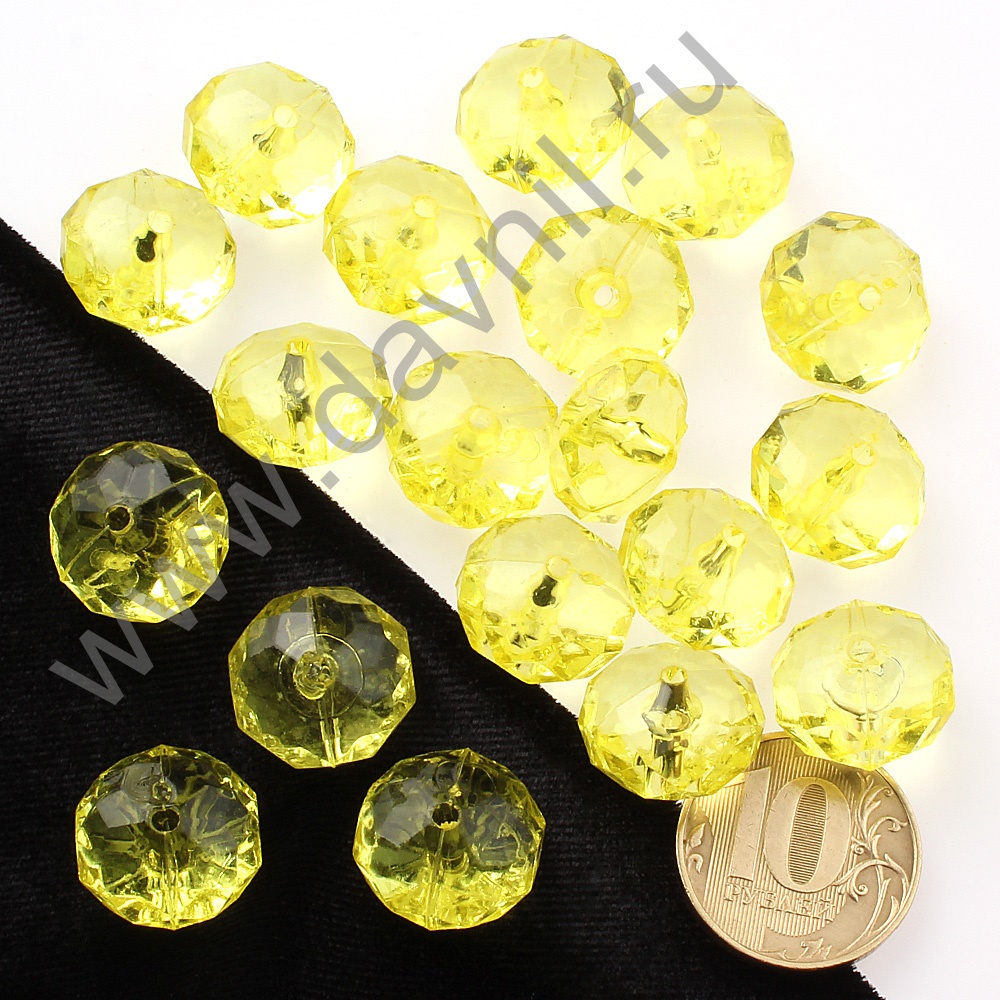 Бусины акрил гранёные рондель d=16 мм 50 гр жёлтые