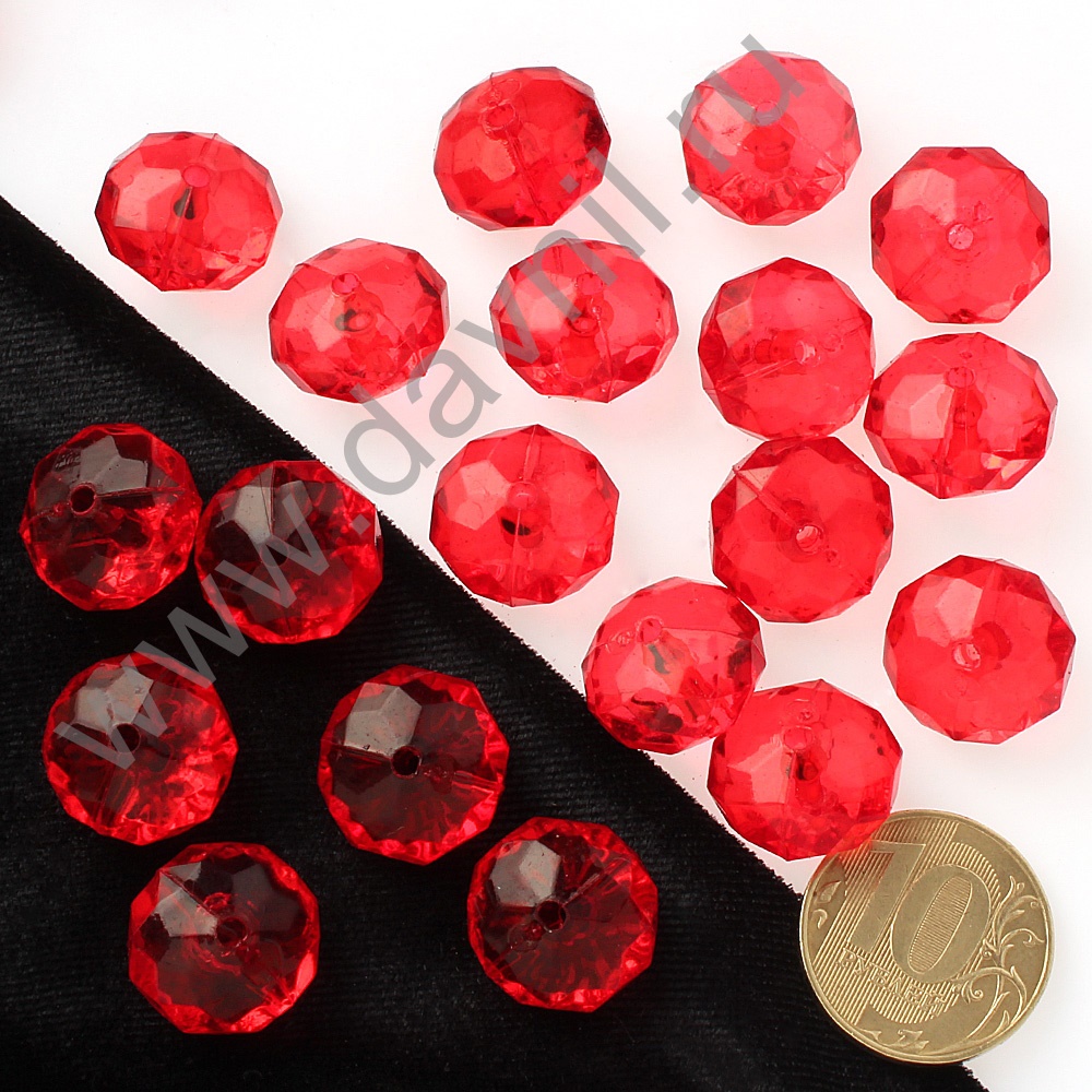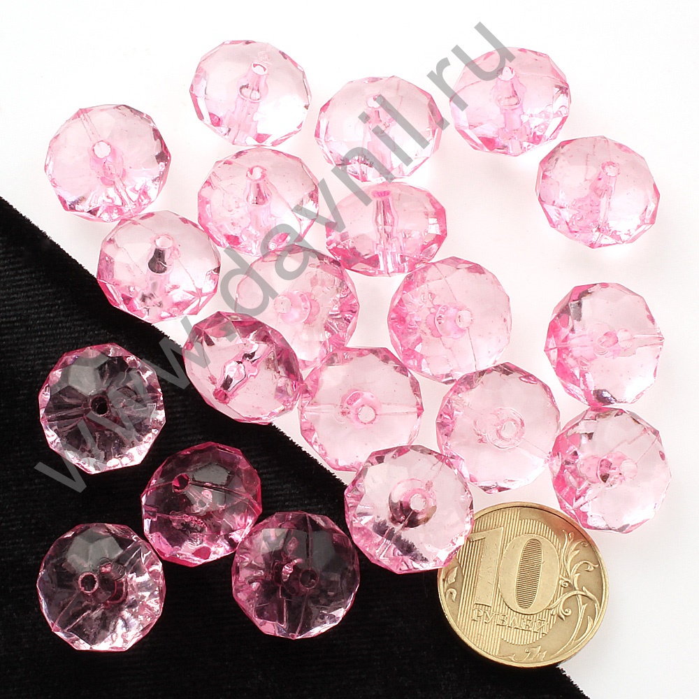 Бусины акрил гранёные рондели d=10 мм 50 гр фуксия