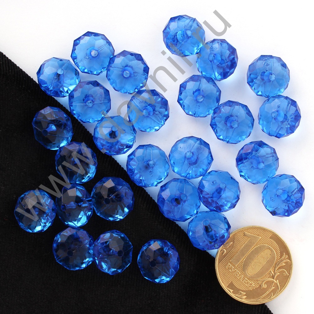 Бусины акрил гранёные рондели d=12 мм 50 гр синие