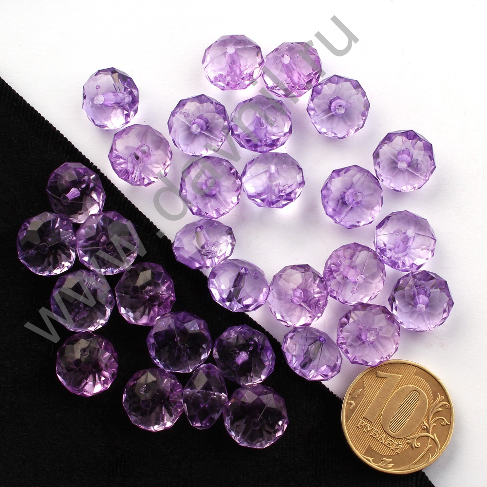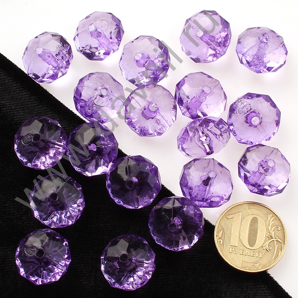 Бусины акрил гранёные рондели d=12 мм 50 гр сиреневые