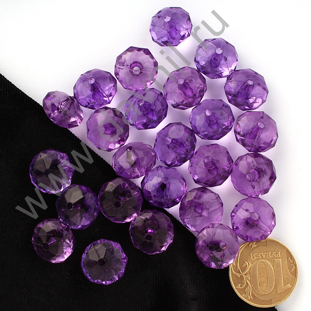 Бусины акрил гранёные рондели d=14 мм 50 гр фиолетовые