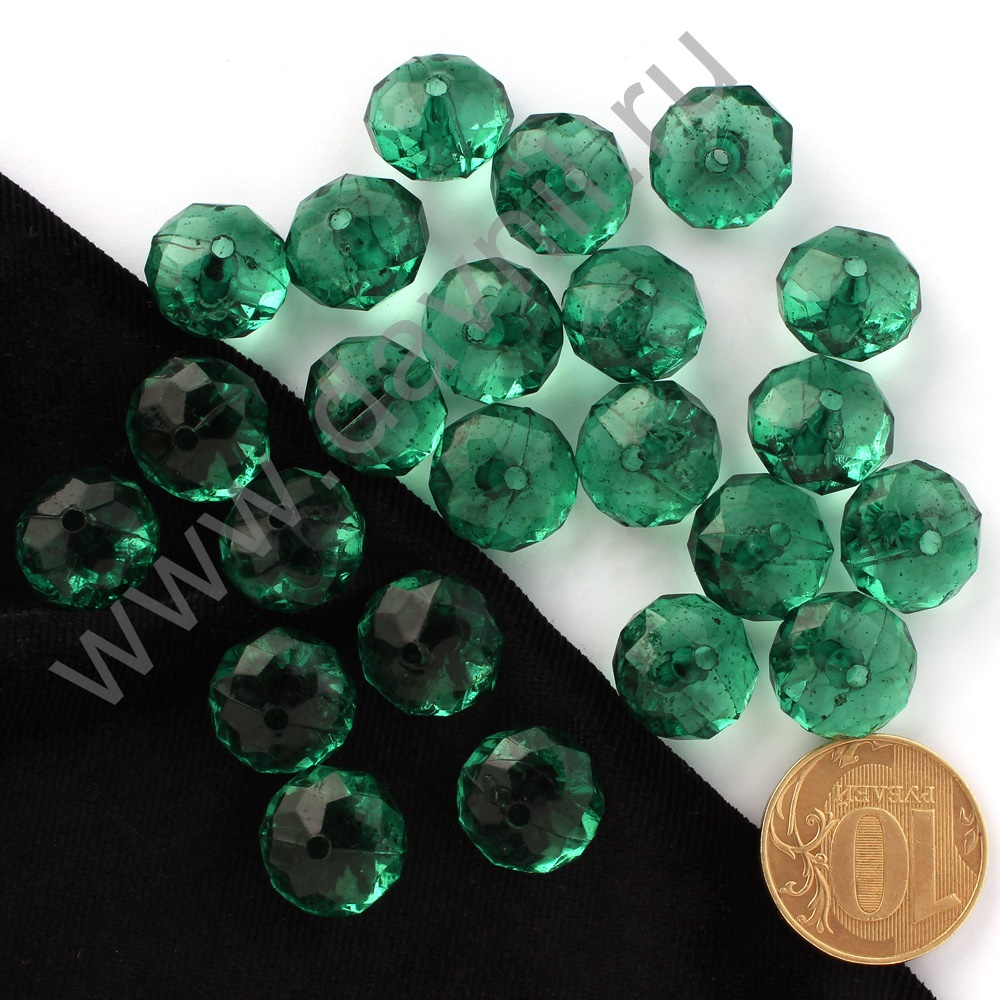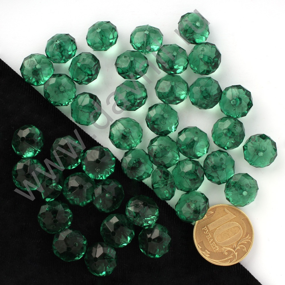 Бусины акрил гранёные рондели d=14 мм 50 гр зелёные