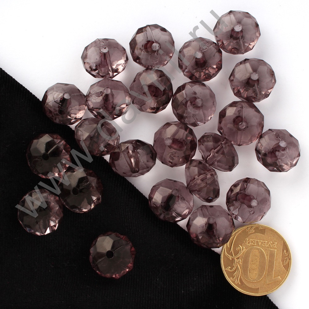 Бусины акрил гранёные рондели d=14 мм 50 гр серые