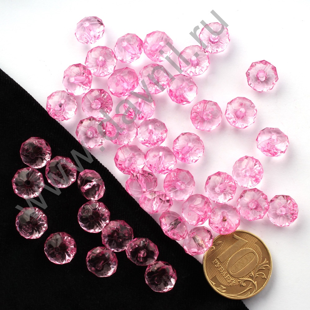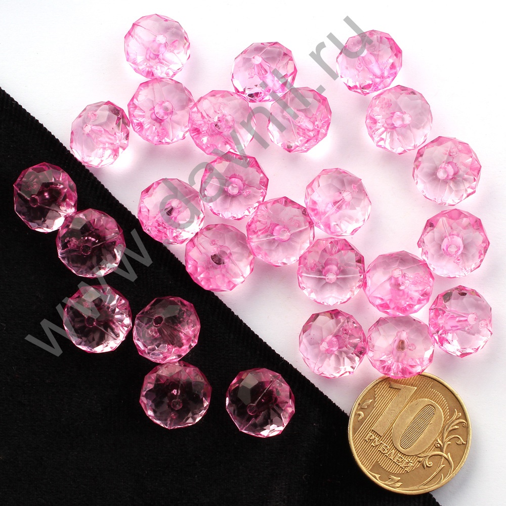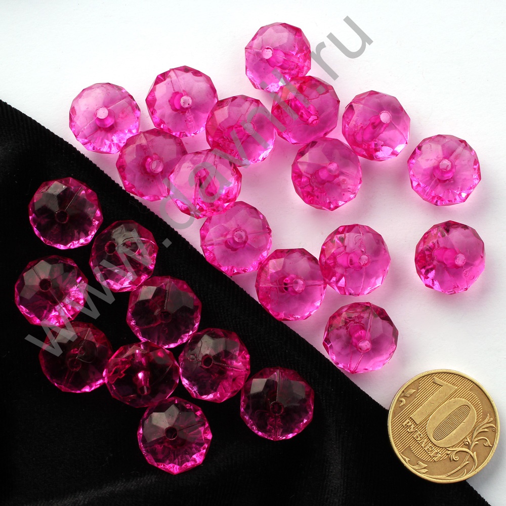 Бусины акрил гранёные рондели d=14 мм 50 гр фуксия