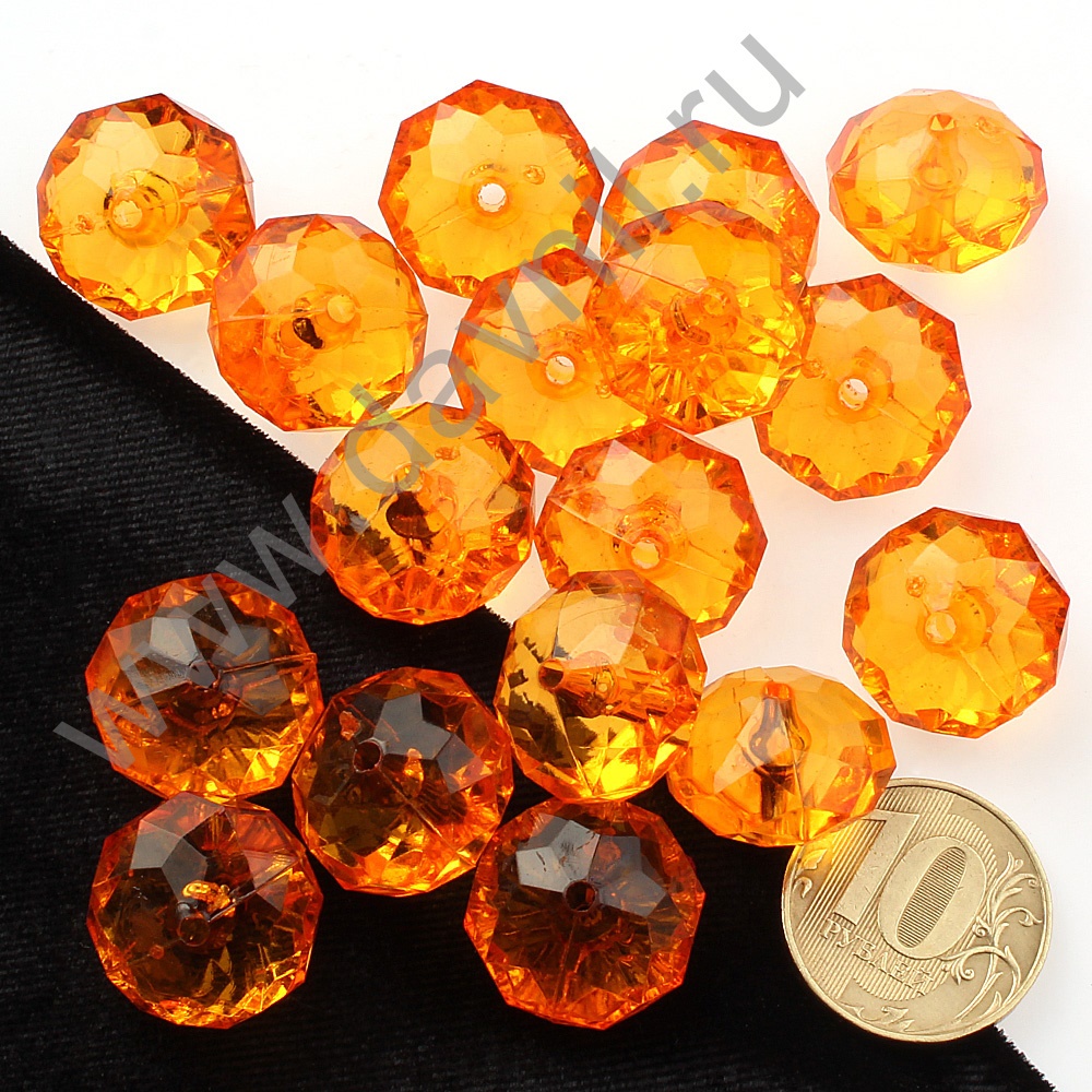 Бусины акрил гранёные рондели d=14 мм 50 гр оранжевые