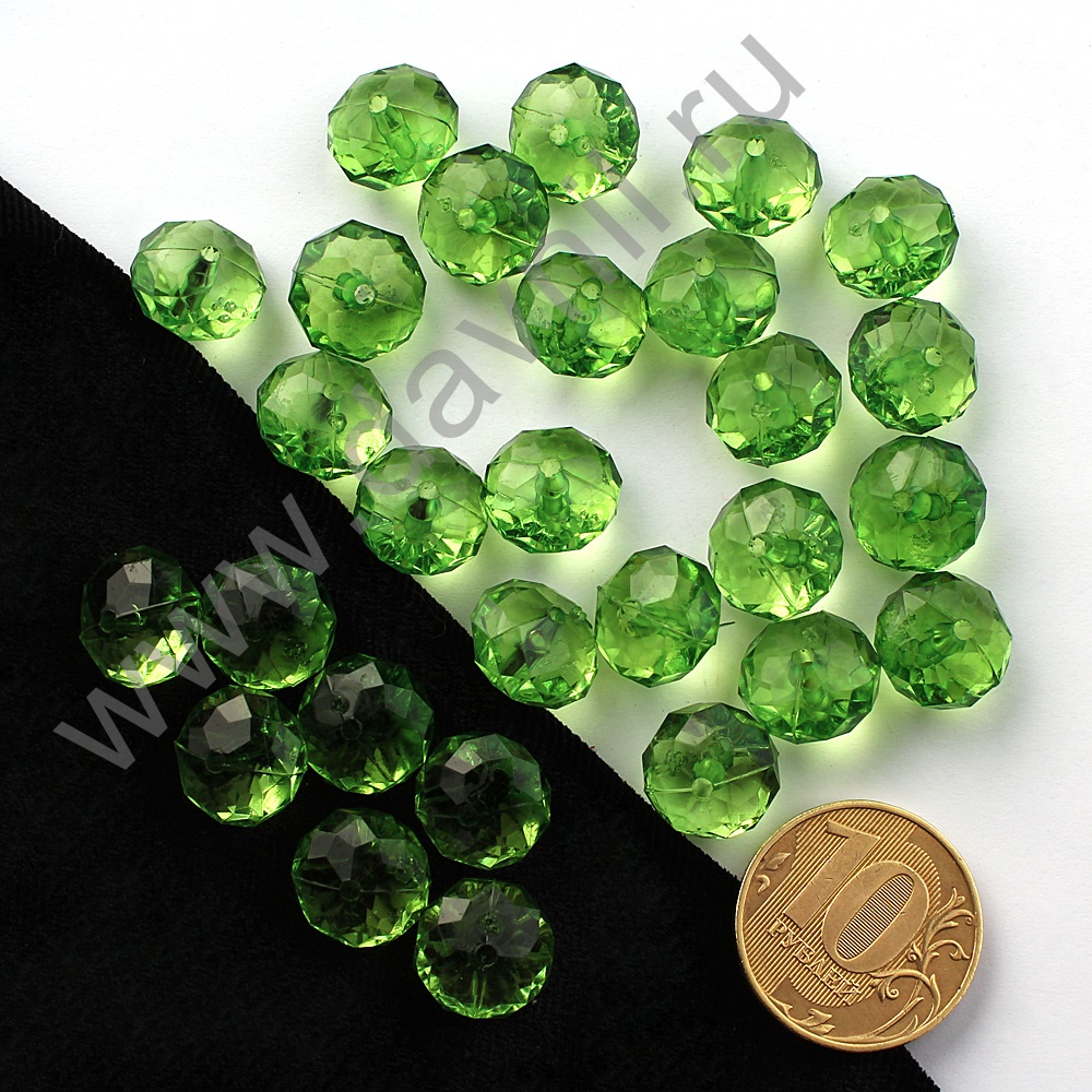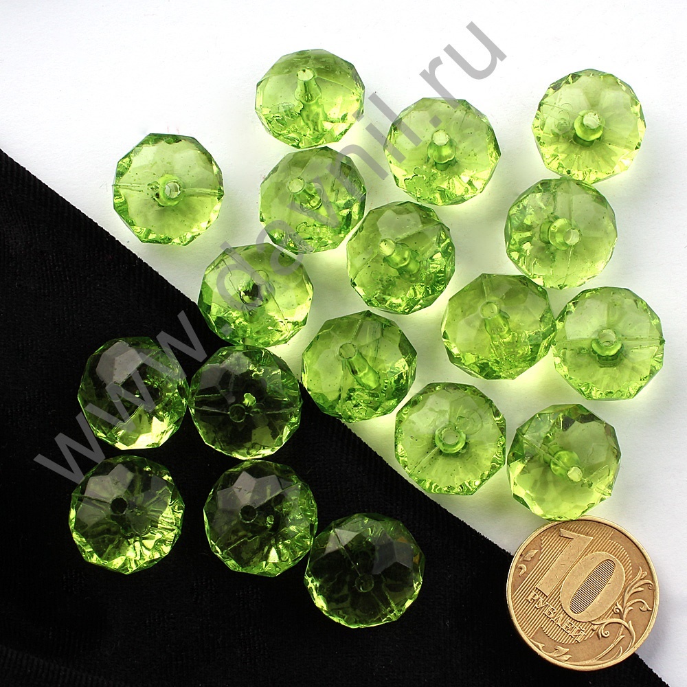 Бусины акрил гранёные рондели d=14 мм 50 гр салатовые
