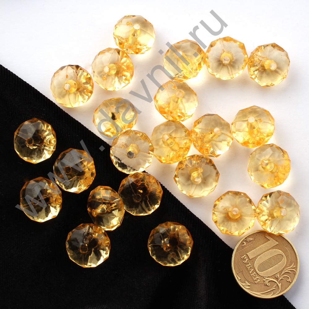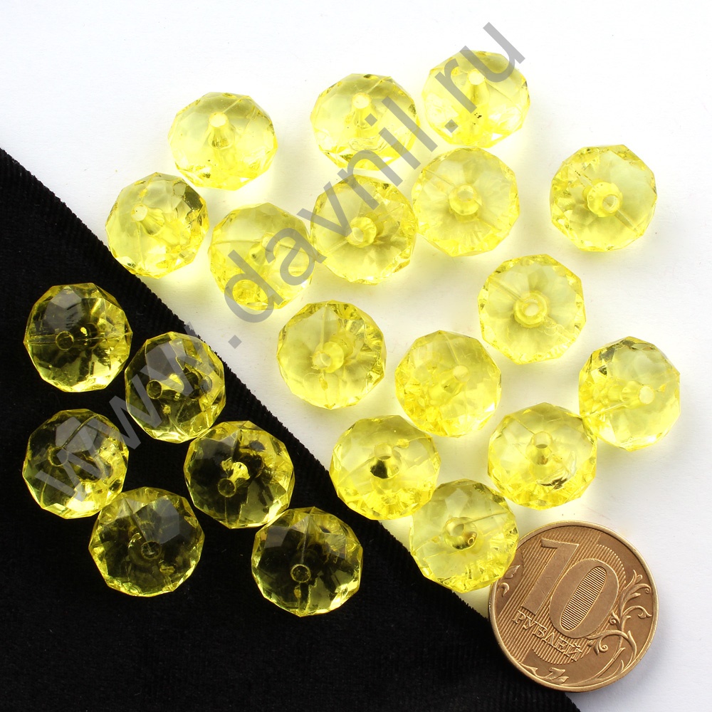 Бусины акрил гранёные рондели d=14 мм 50 гр жёлтые