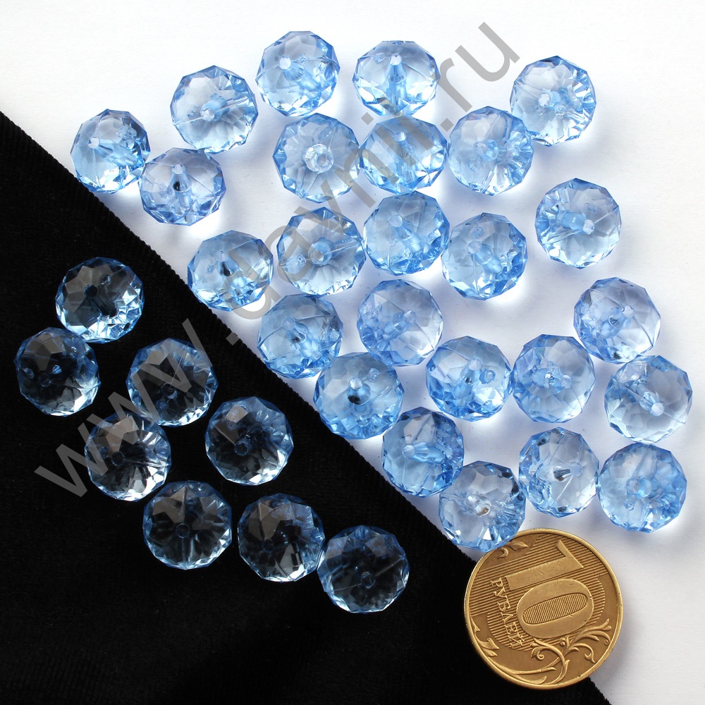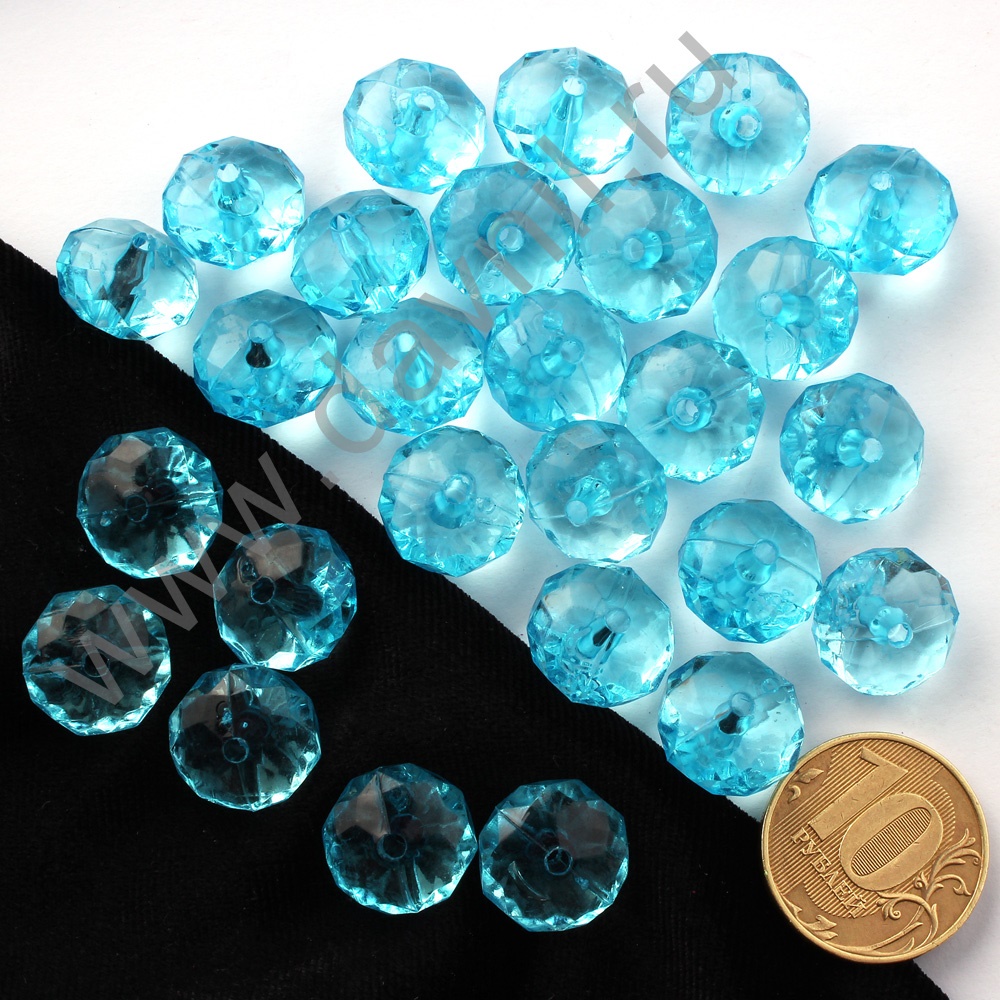 Бусины акрил гранёные рондели d=14 мм 50 гр бирюзовые