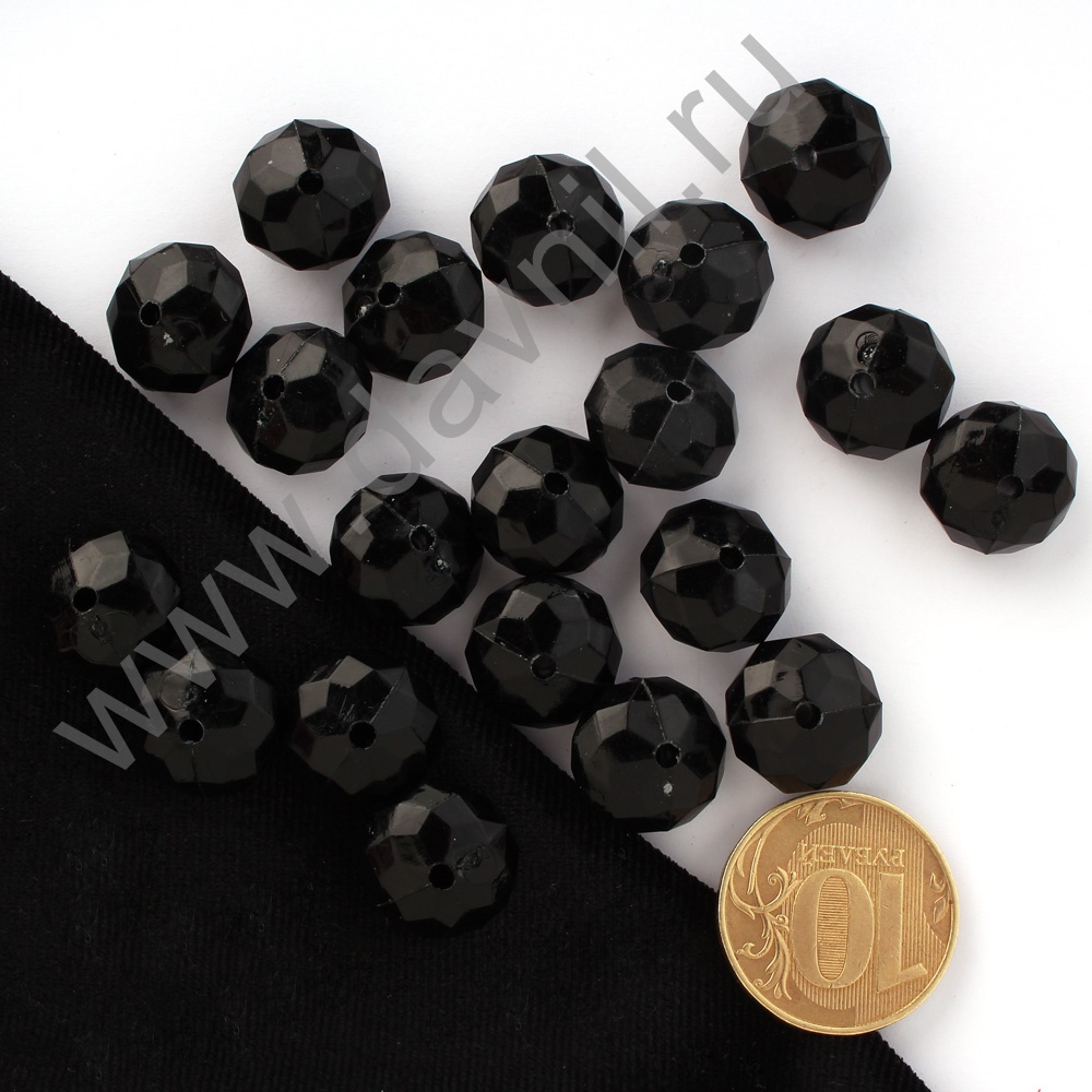 Бусины акрил гранёные рондели d=14 мм 50 гр чёрные
