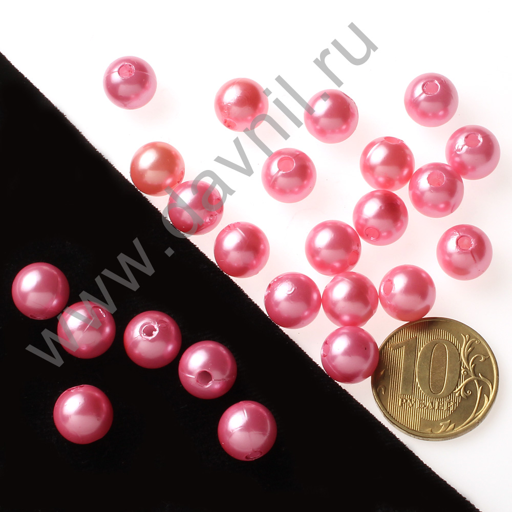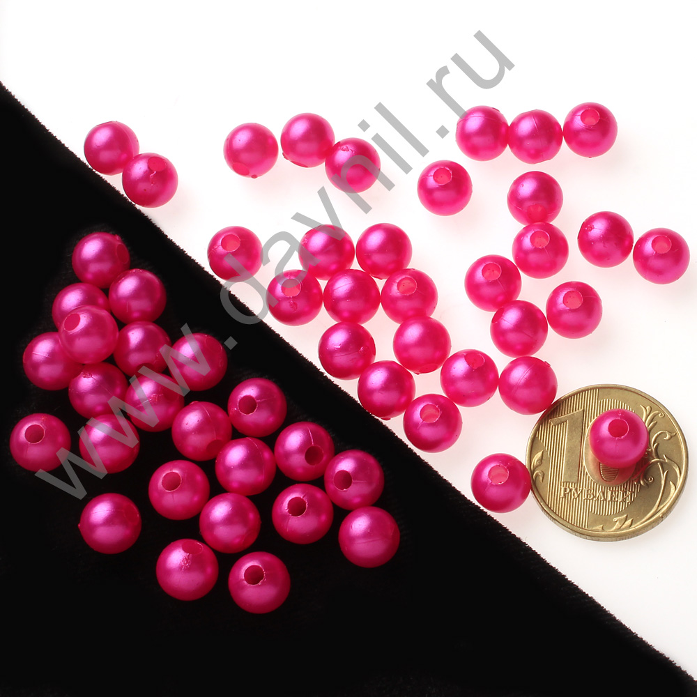 Бусины под жемчуг 8 мм 50 гр фуксия