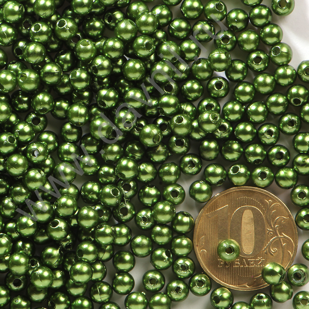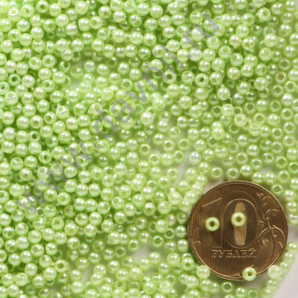 Бусины под жемчуг "Круг" d=3 мм 50 г салатовые