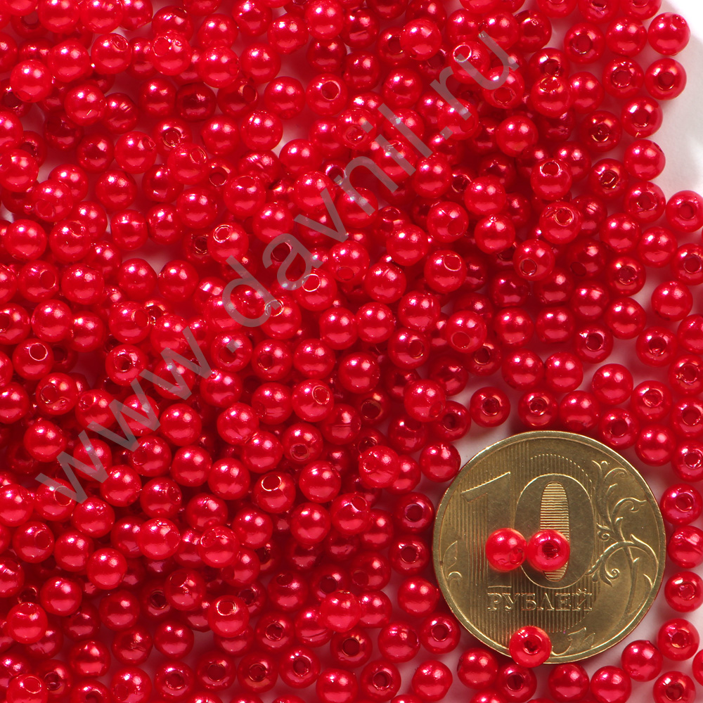Бусины под жемчуг "Круг" d=4 мм 400 г красные