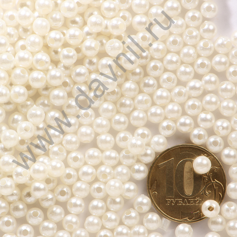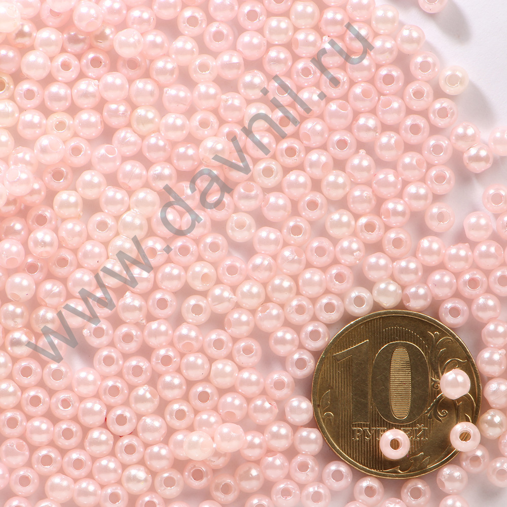 Бусины под жемчуг "Круг" d=3 мм 50 г светло-розовые