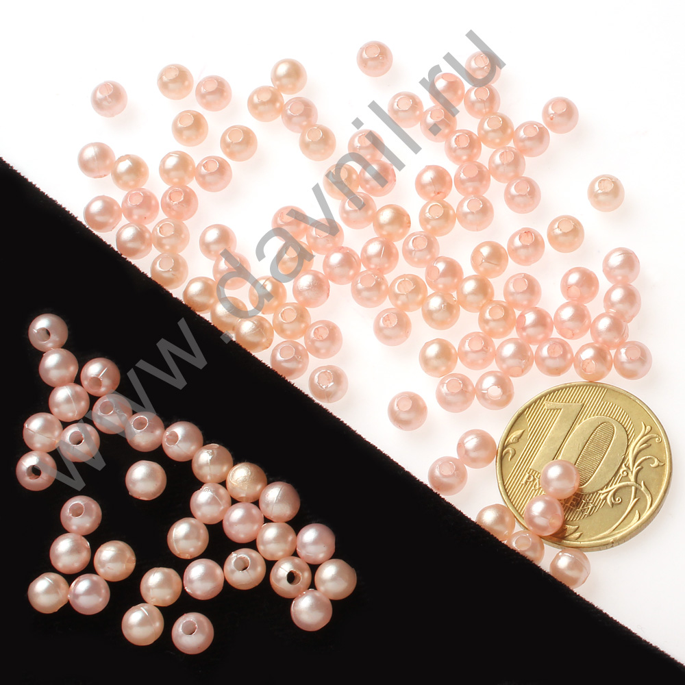 Бусины под жемчуг "Круг" d=5 мм 400 г персиковые 40