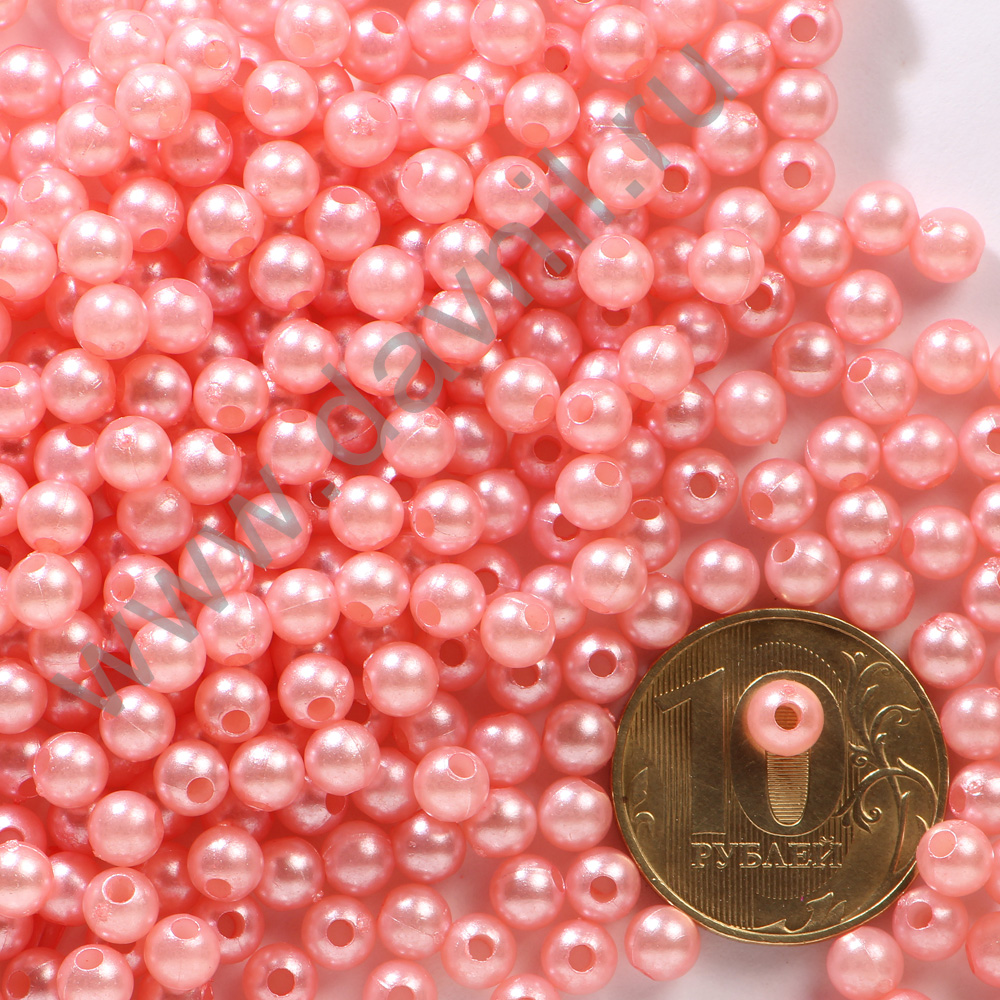 Бусины под жемчуг "Круг" d=5 мм 50 г розовые