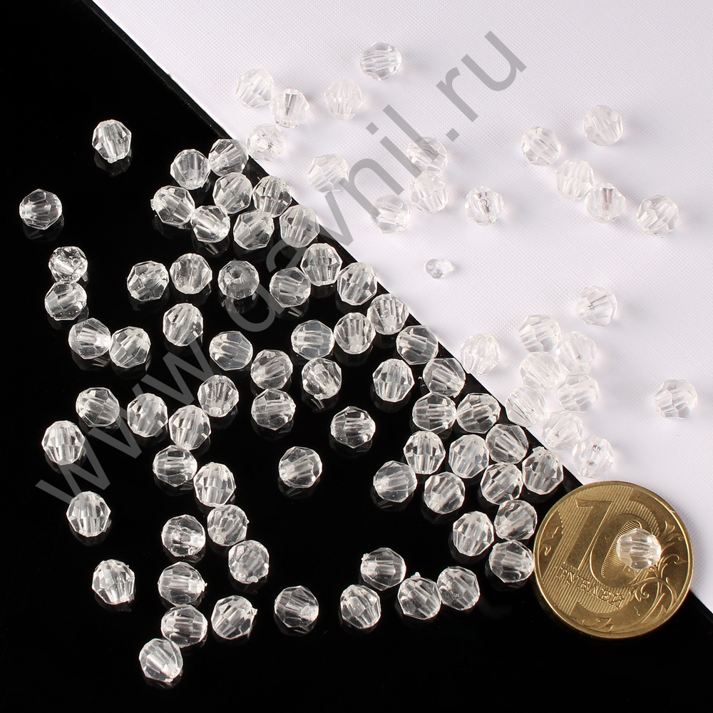 Бусины акрил гранёные рондели d=6 мм 500 гр белые