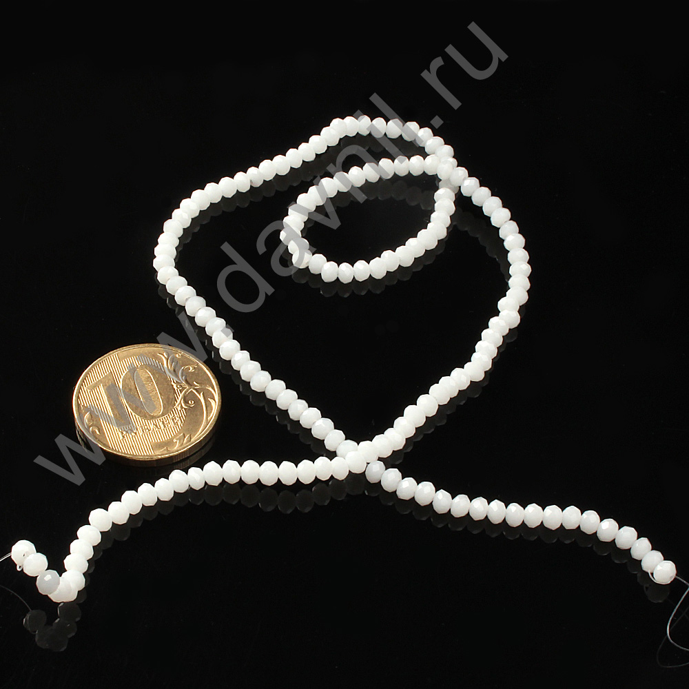 Бусины на леске стеклянные граненые d=3 мм 42 см 150 шт белый 1