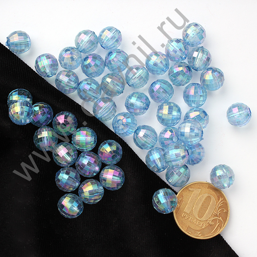 Бусины акрил гранёные круглые хамелеон d=10 мм 400 г голубые