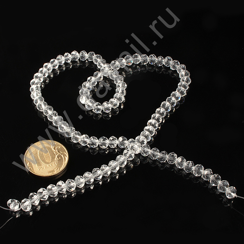 Бусины на леске стеклянные граненые d=6 мм 45 см 100 шт. белый 1