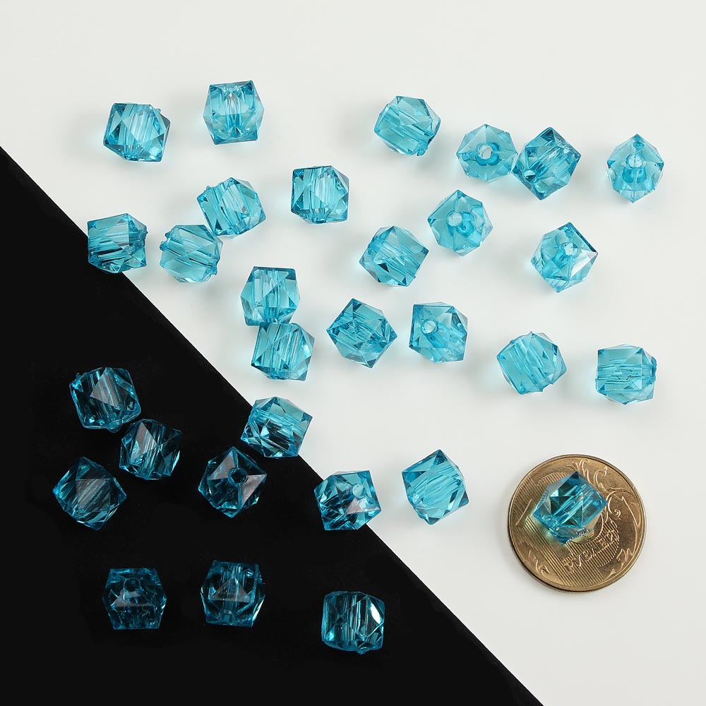 Бусины граненые квадратные 10 мм 400 гр голубые 6