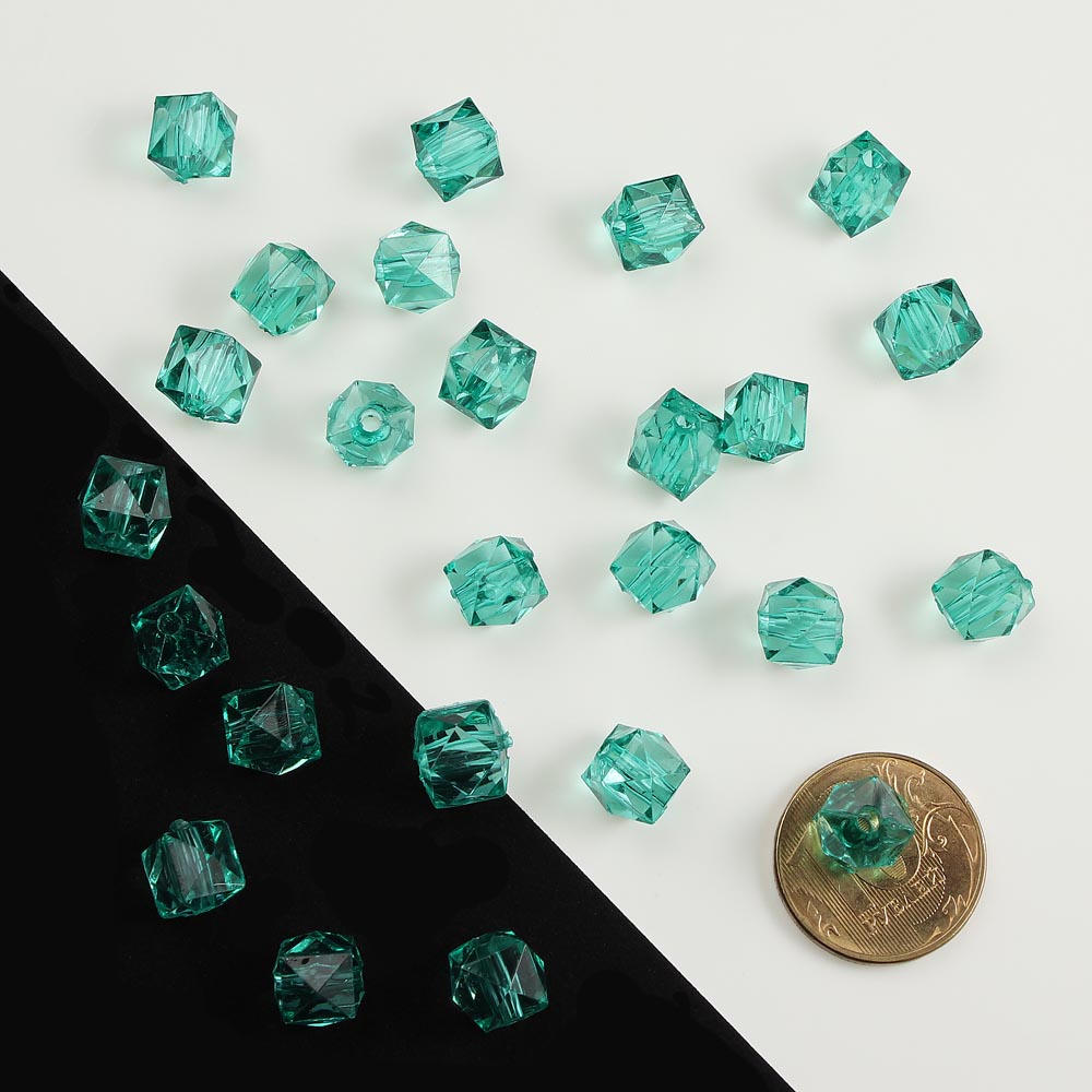 Бусины граненые квадратные однотонные 8 мм 400 гр бирюзовые 50