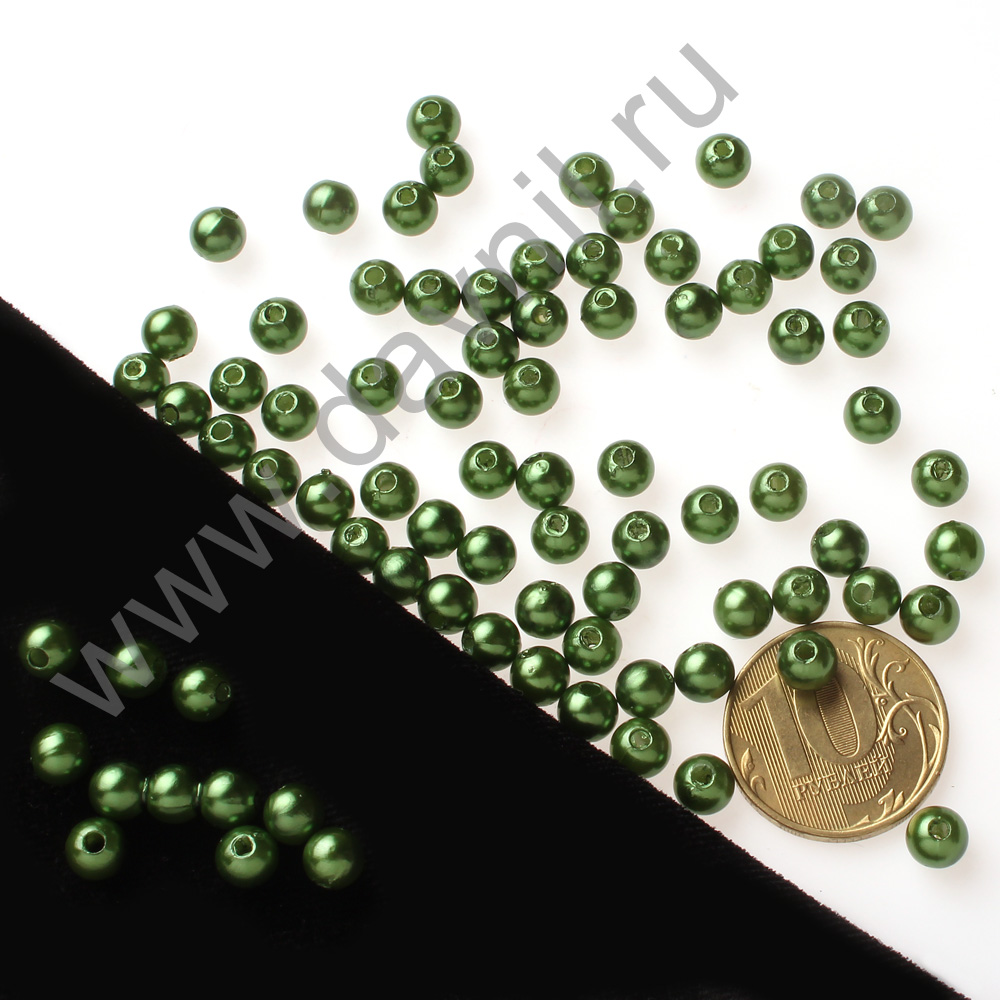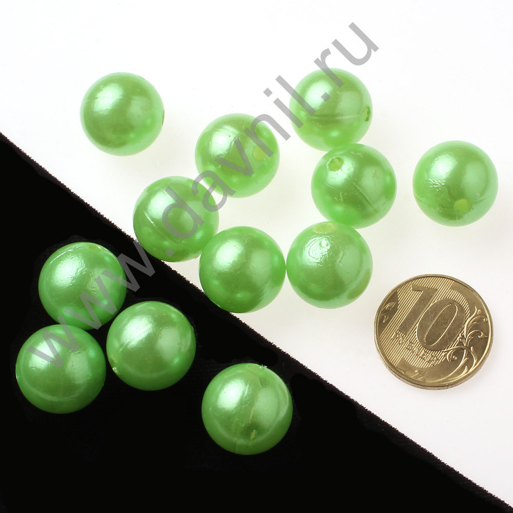 Бусины под жемчуг "Круг" d=10 мм 50 г салатовые