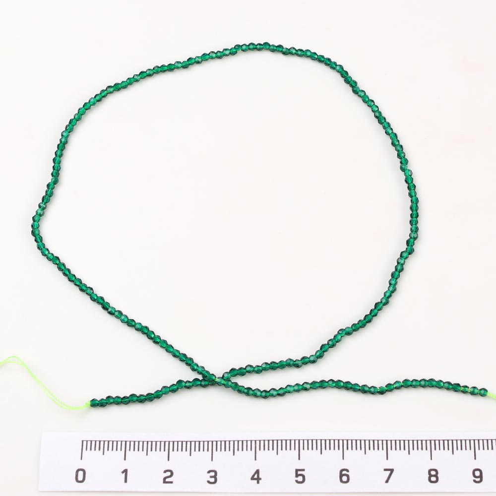 Бусины хрусталь 2 мм 38 см на нитке тёмно зелёный