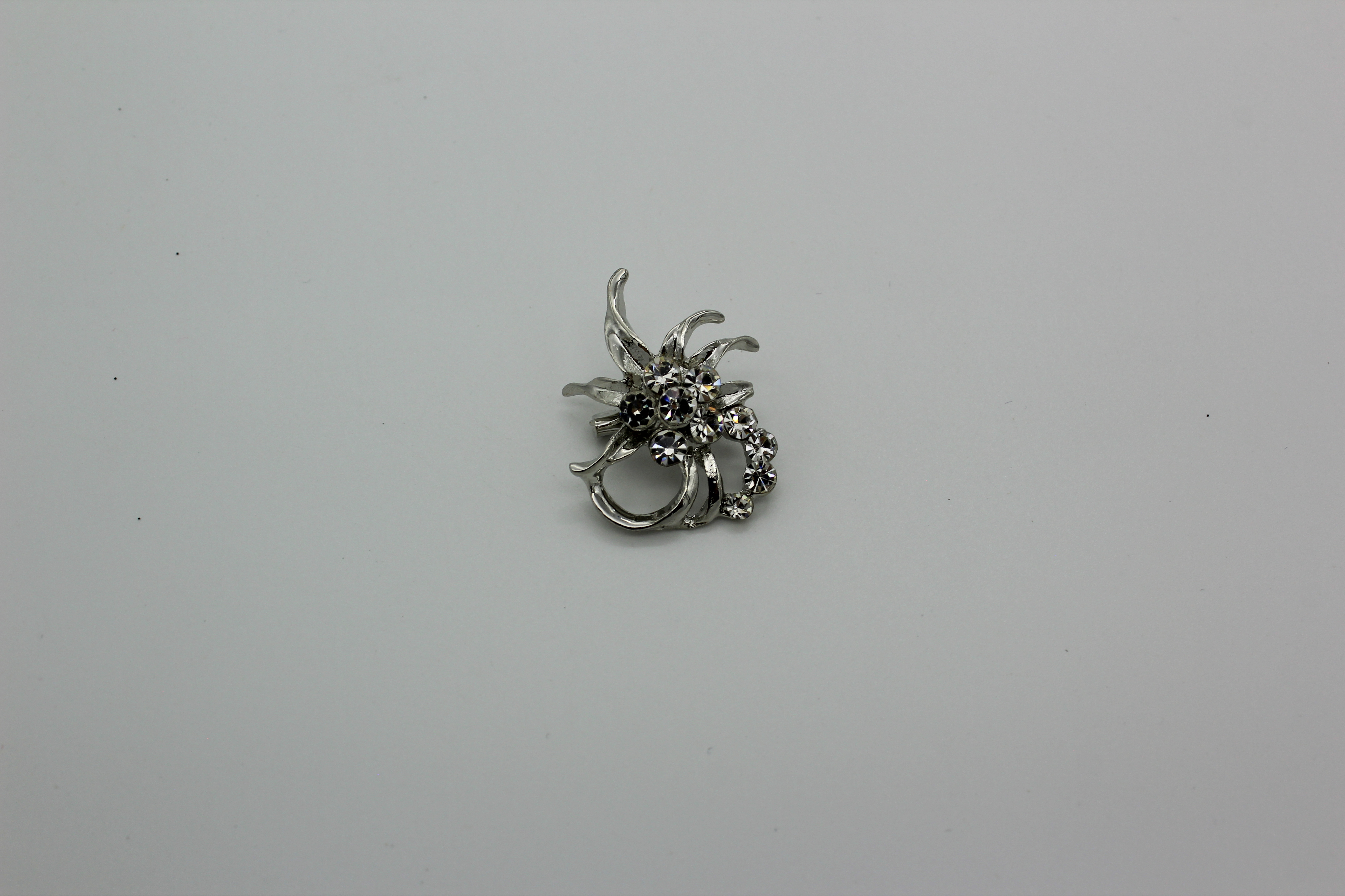Детская брошь цветок с веточкой из страз 1 шт серебро