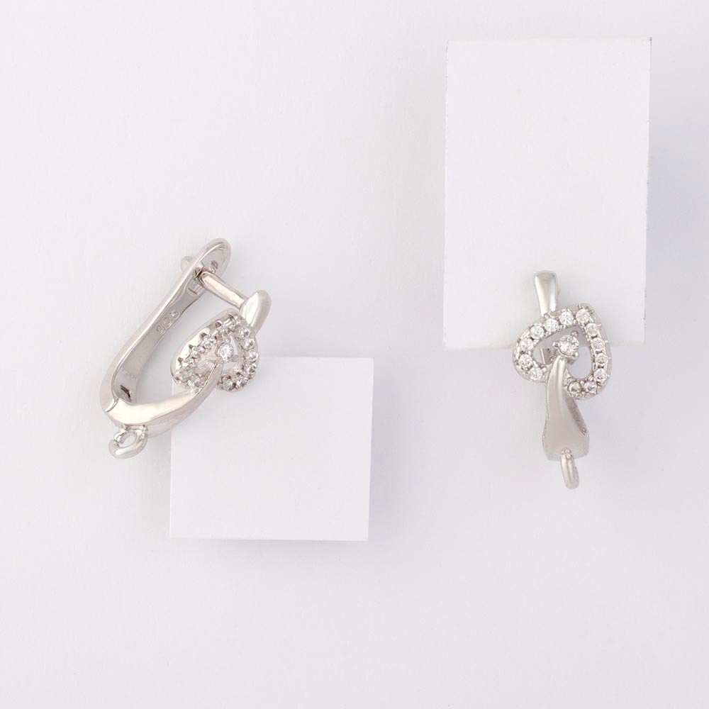 Швензы родиевое покрытие сердечко со стразами 1 пара серебро 13/4