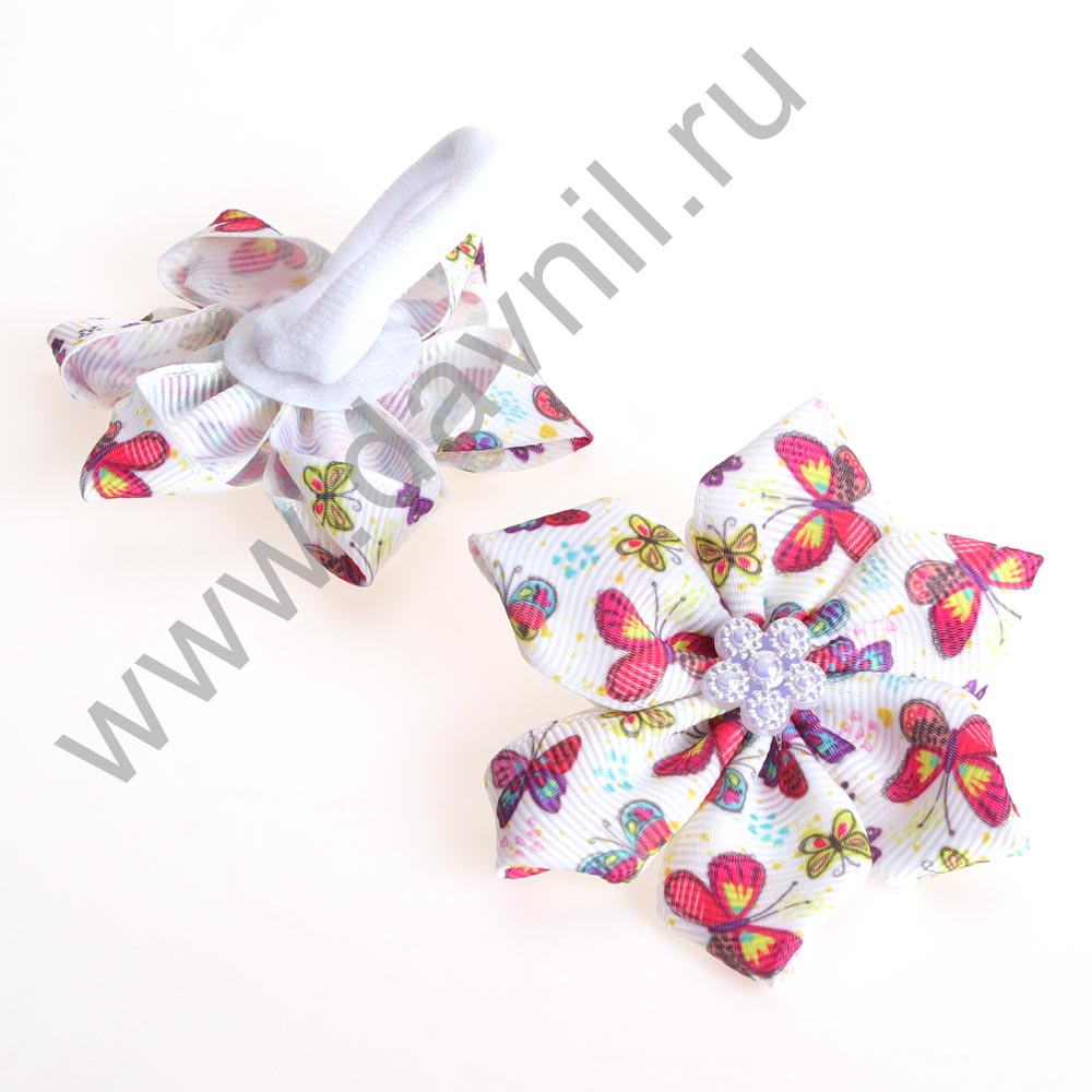 Бант на резинке с камнями 9*8 см серый 2 шт.