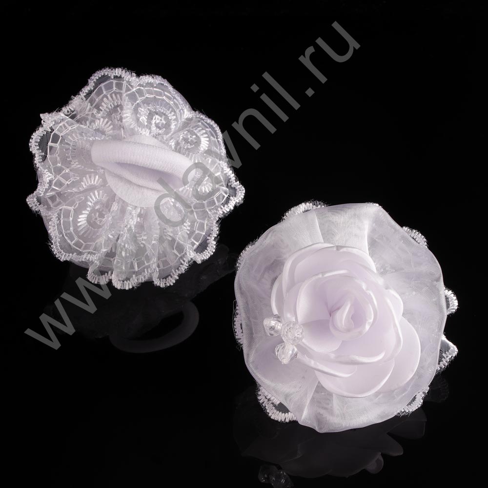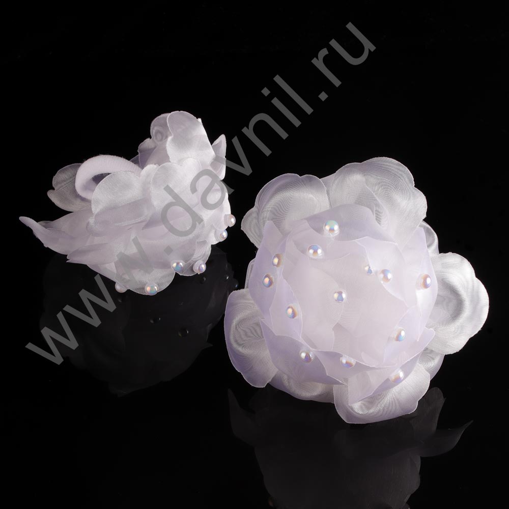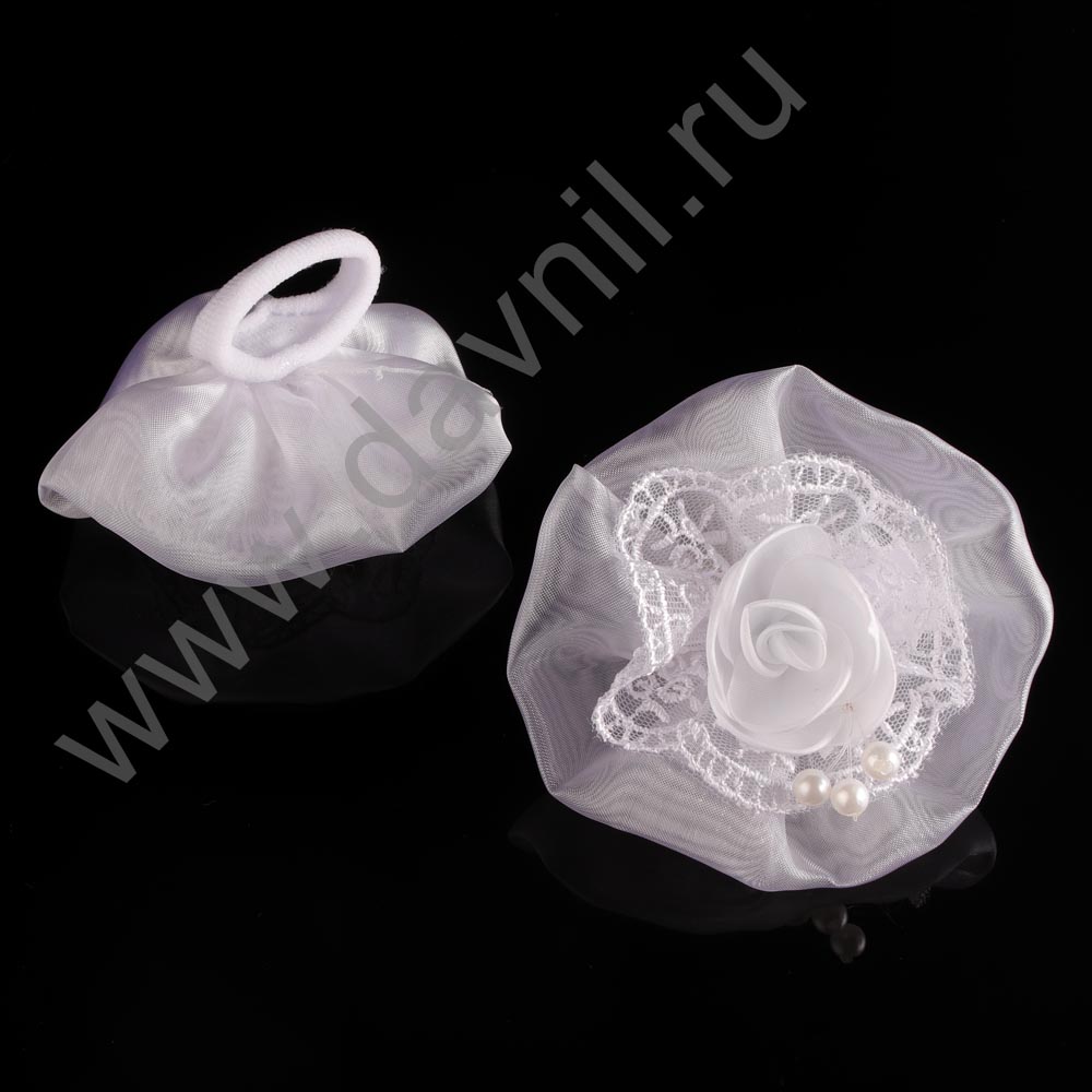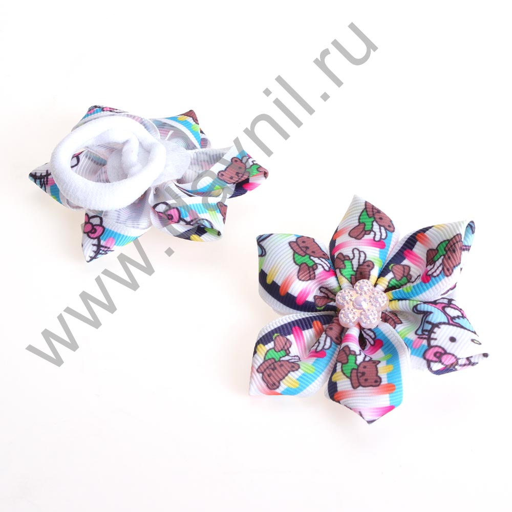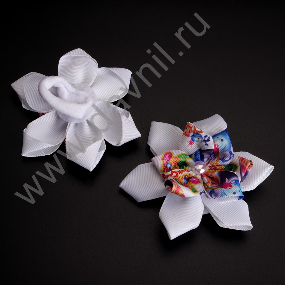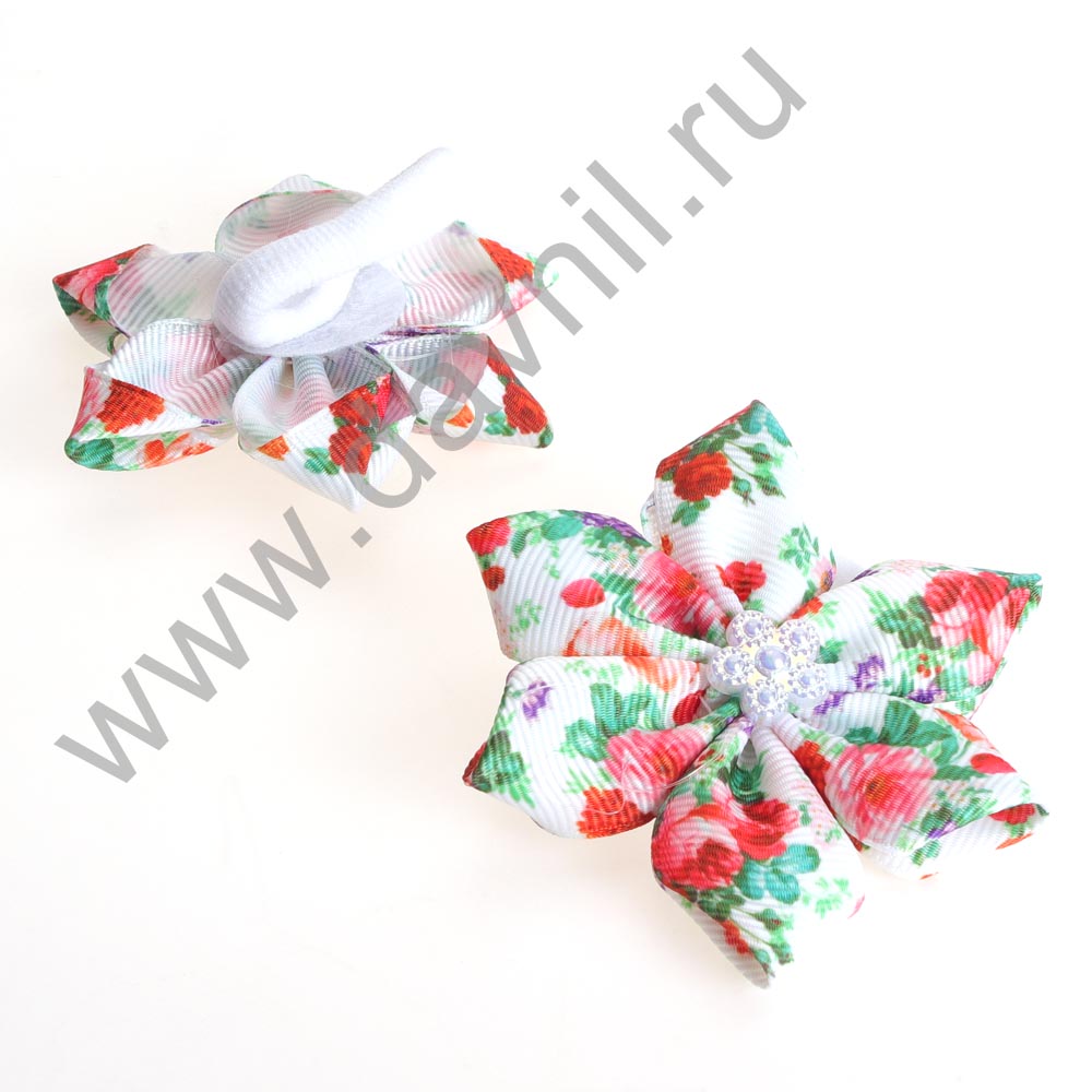 Бант на резинке с цветком 7*7 см 2 шт. белая с цветами