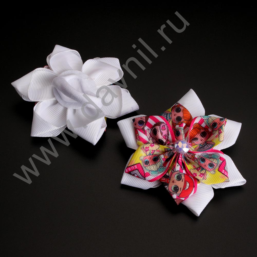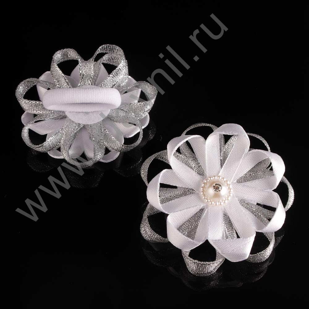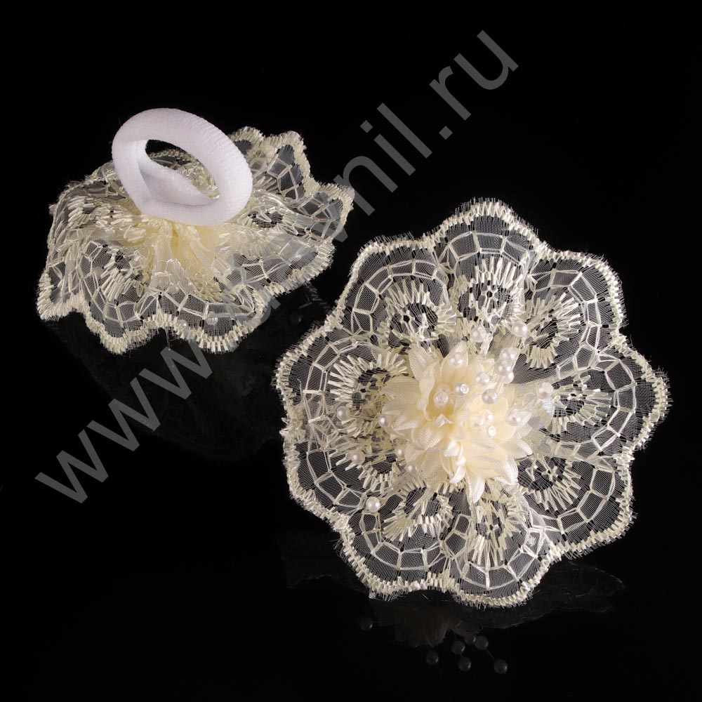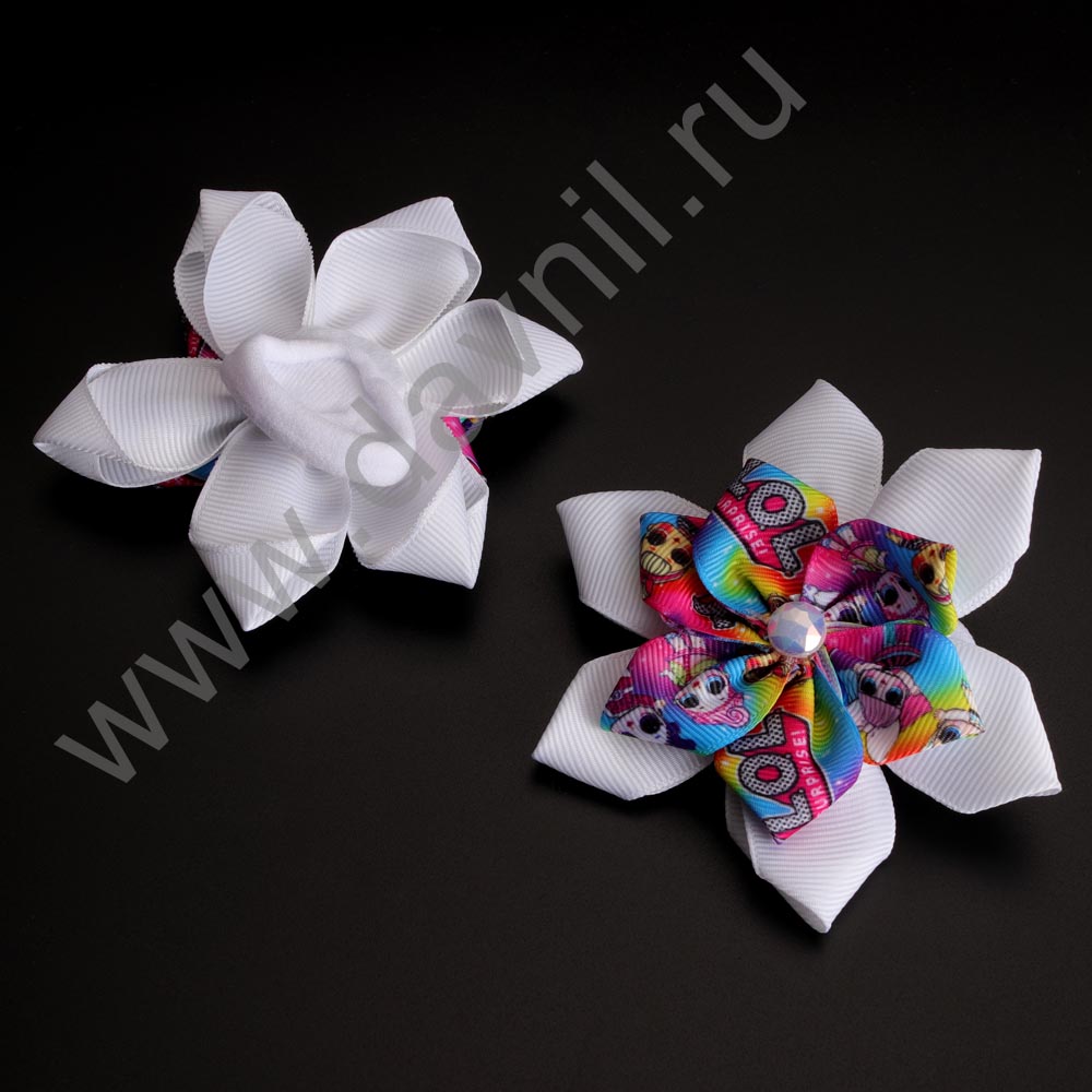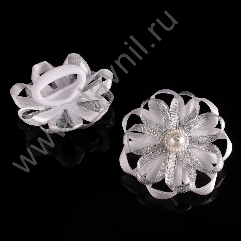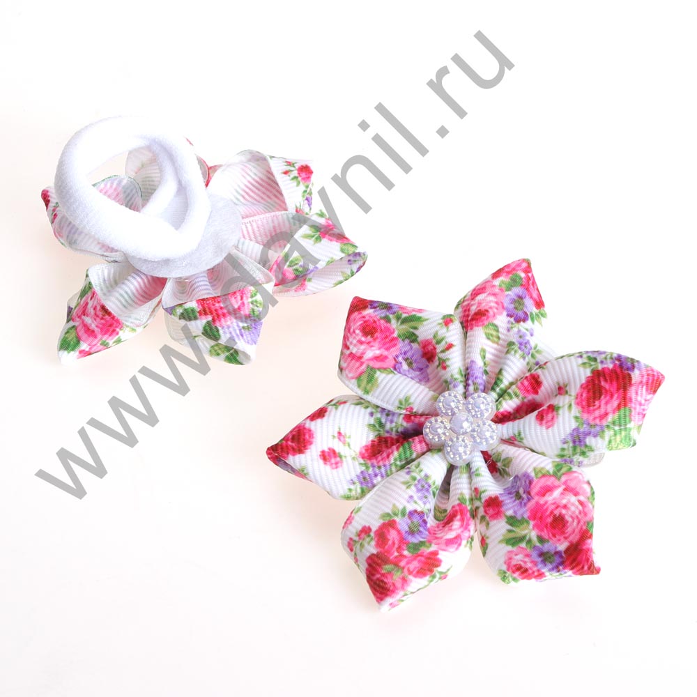 Бант на резинке с цветком 7*7 см 2 шт. белая с цветами