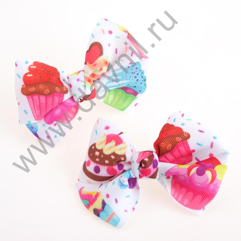 Бант на резинке "Сладости" d=8 см 2 шт. белый