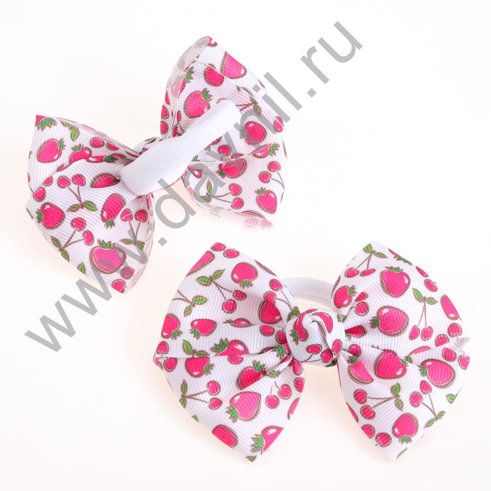 Бант на резинке "Ягодки" d=8 см 2 шт. белый