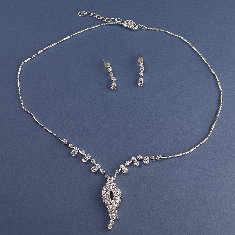 Набор с жемчугом и стразами под серебро из четырех предметов