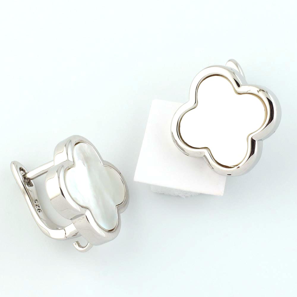 Серьги Клевер родиевое покрытие перламутр в серебре 1 пара 32