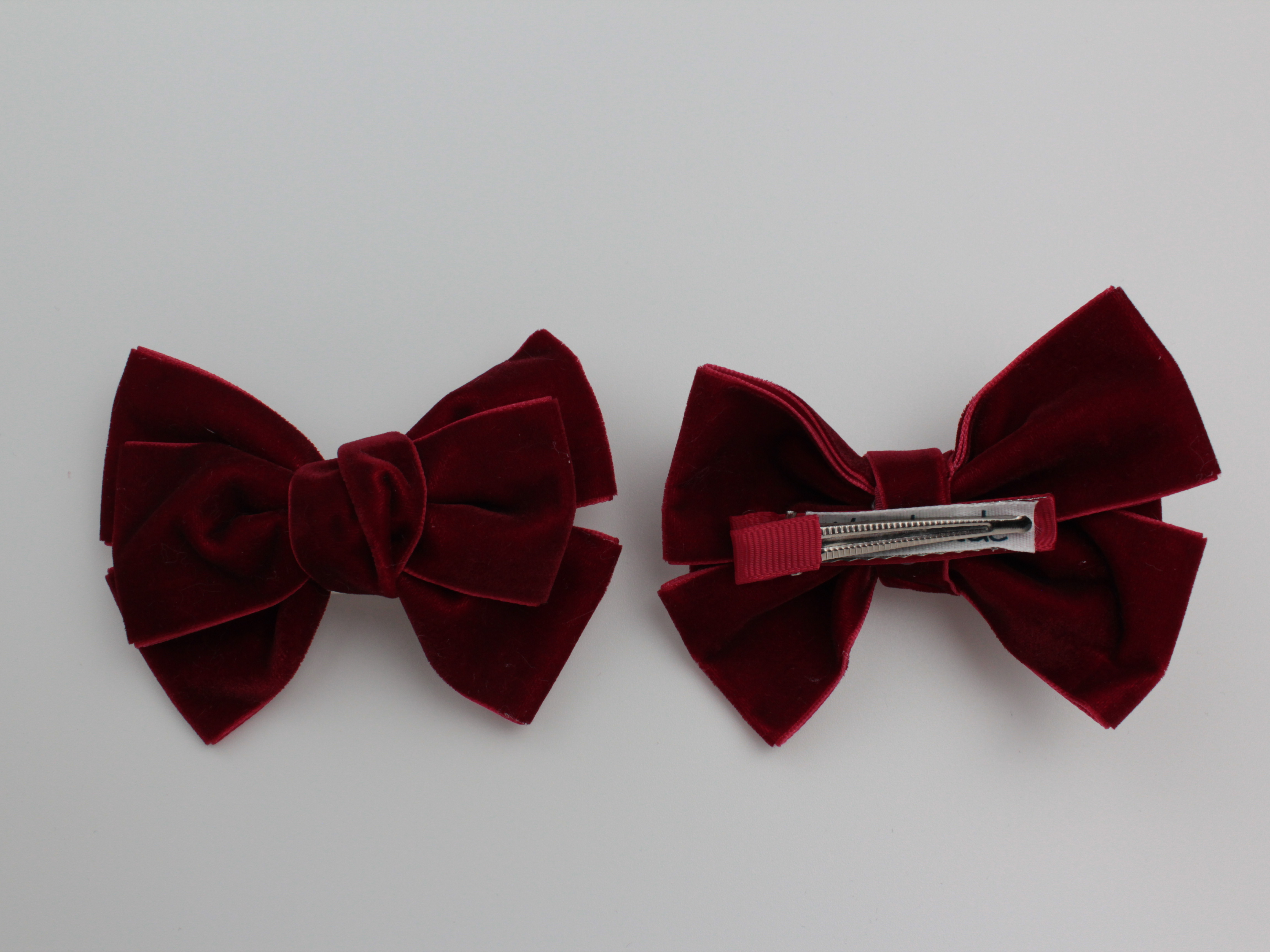 Бант для волос бархатный на уточке 9 см бордовый 2 шт