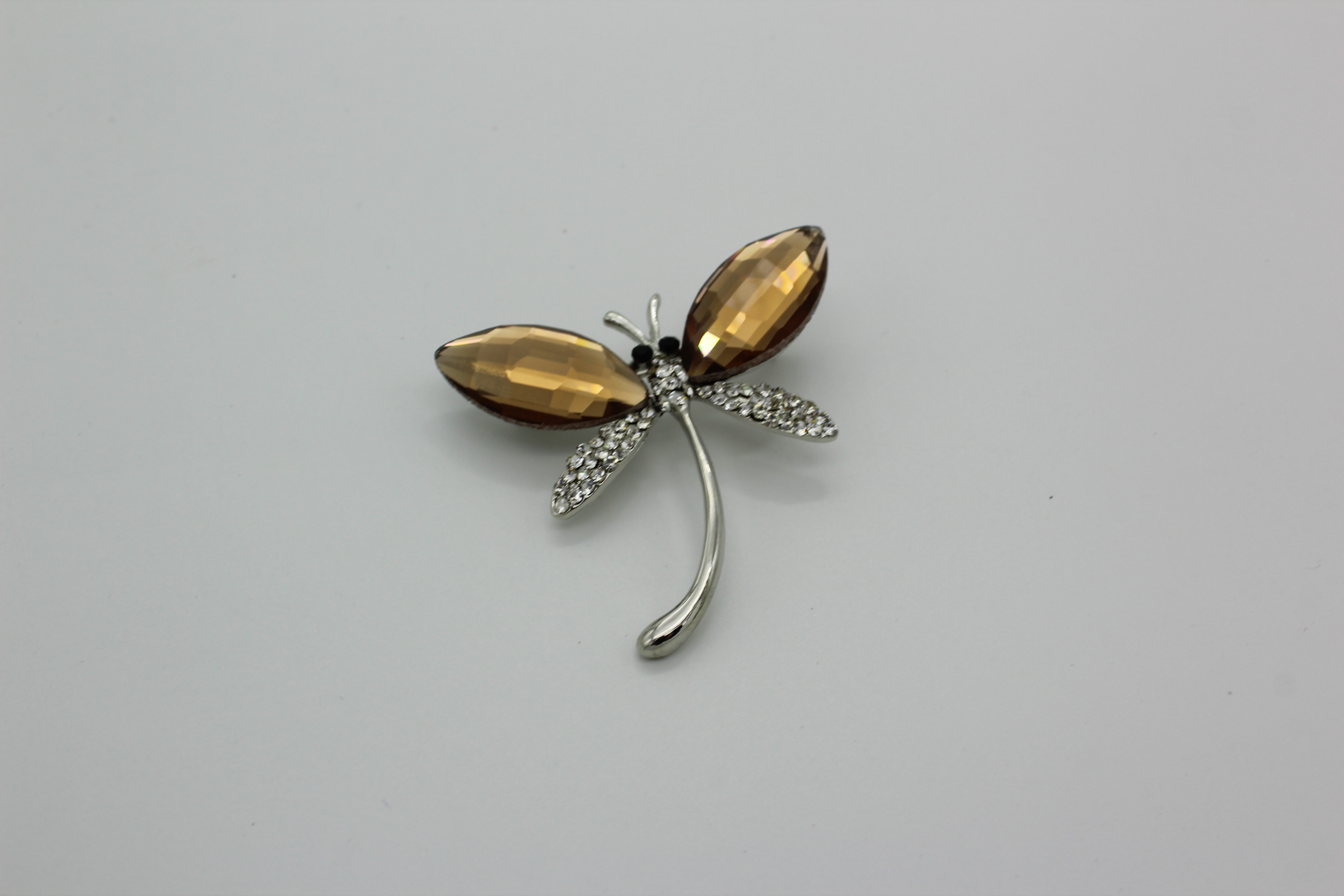 Брошь со стразами " Стрекоза" коричневая