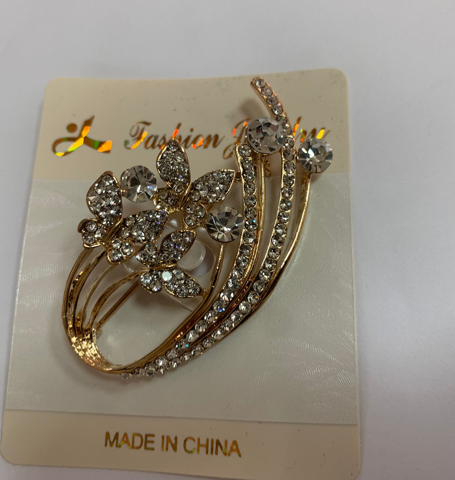 Брошь три бабочки со стразами 60*30 мм золото