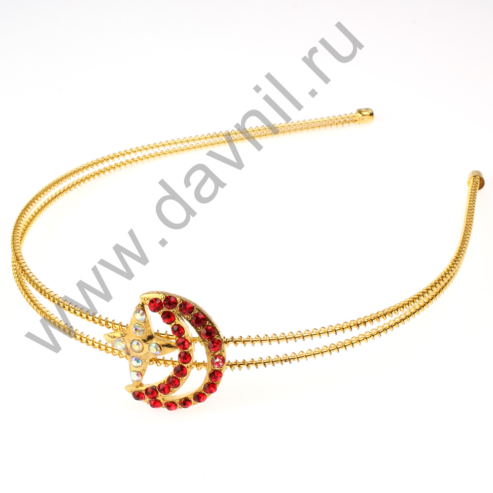 Ободок золотой металлический "Полумесяц с звездой" с красными стразами