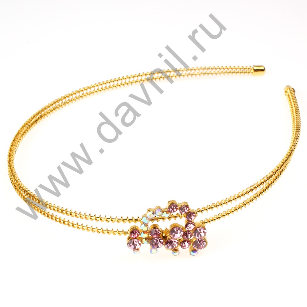 Ободок золотой металлический "Стрекоза" с сиреневая стразами